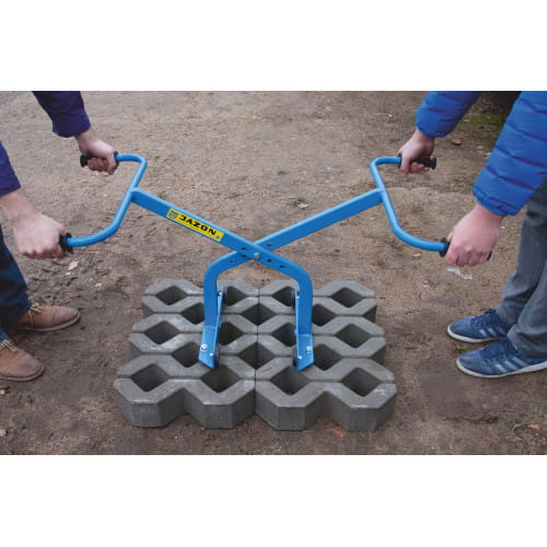 Chwytak przeznaczony jest do przenoszenia i ustawiania krawężników i obrzeży chodnikowych. Chwytak wyposażony jest również w elementy pozwalające na przenoszenie ażurowych płyt chodnikowych i krawężników łukowych. Narzędzie nadaje się wszędzie tam, gdzie liczy się szybkość. Obsługa dwuosobowa.