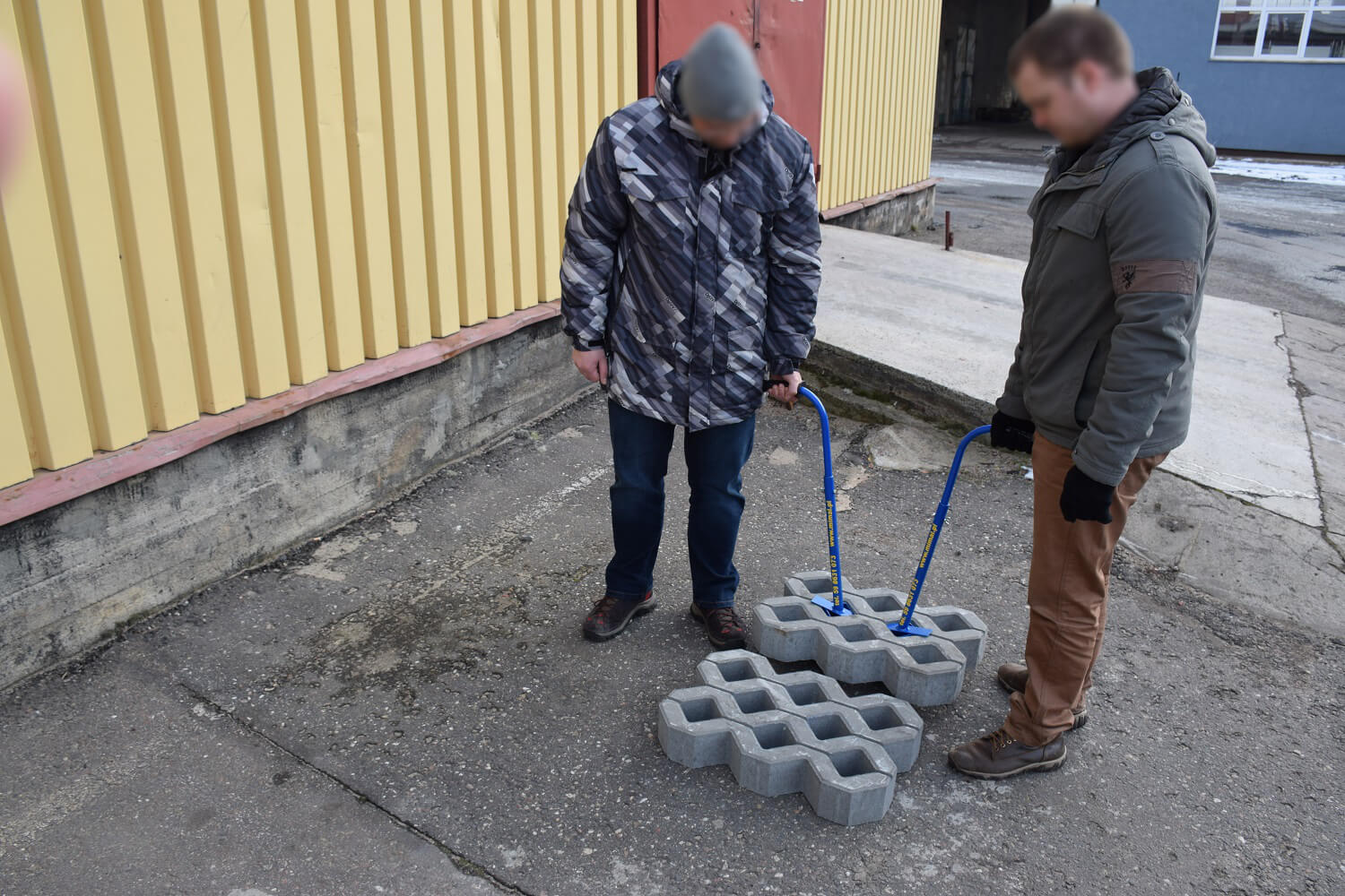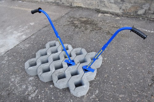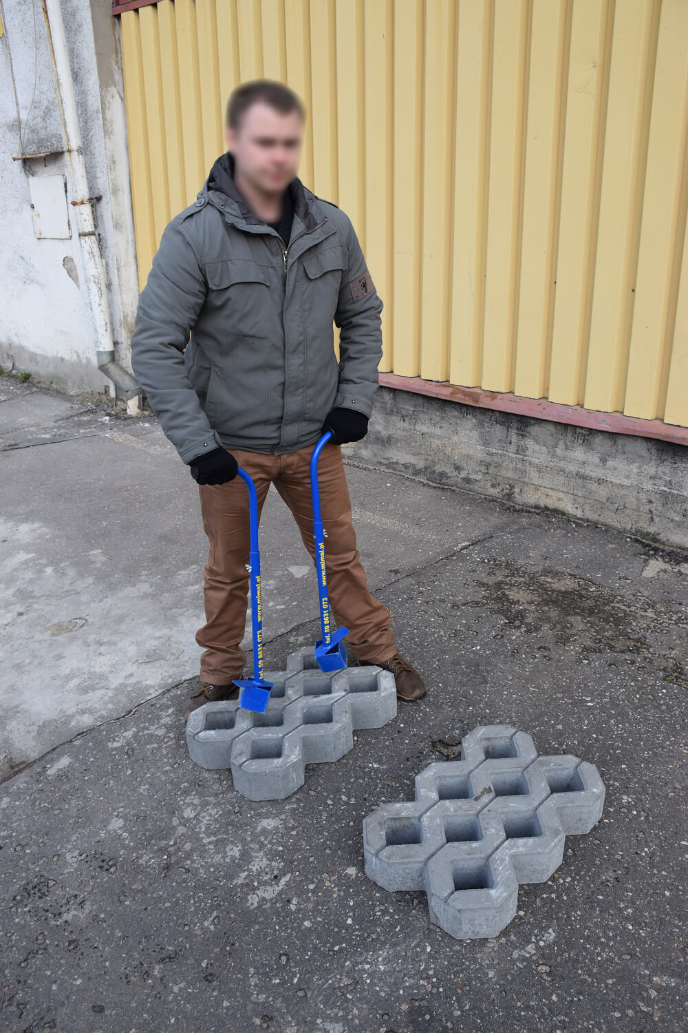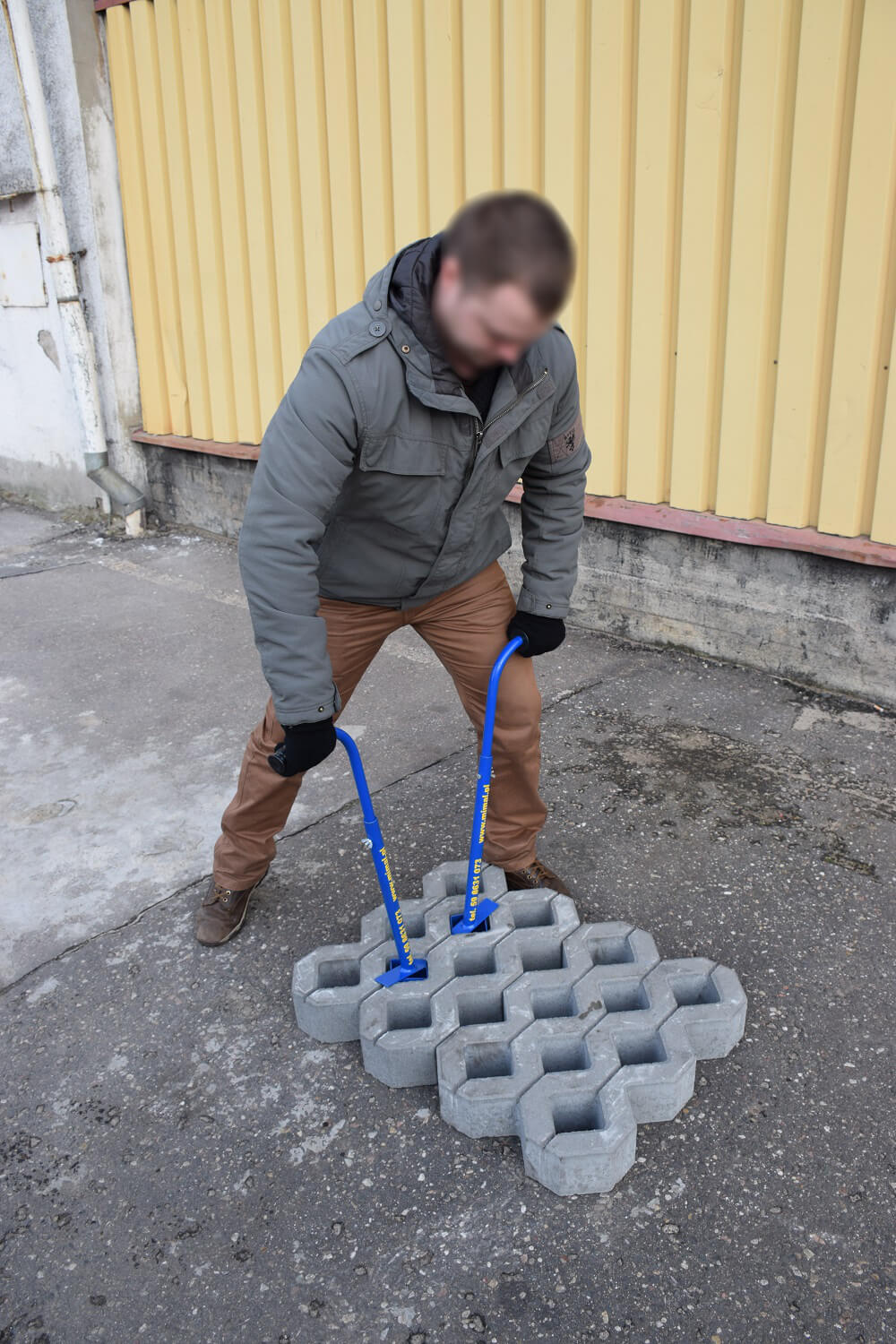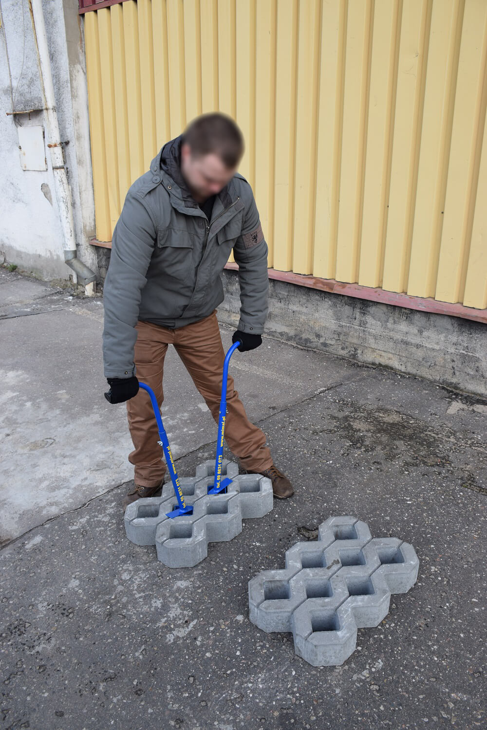 Służą do przenoszenia i układania płyt ażurowych oraz kratownic betonowych pod trawnik. Chwytaki idealnie pasują do kostek z otworami o wymiarach ok. 100 x 100 mm. Regulowana długość rączek pozwala dostosować urządzenie do wzrostu każdego pracownika. Powierzchnie malarskie wykonane metodą proszkową zapewniają im trwałość oraz estetykę.