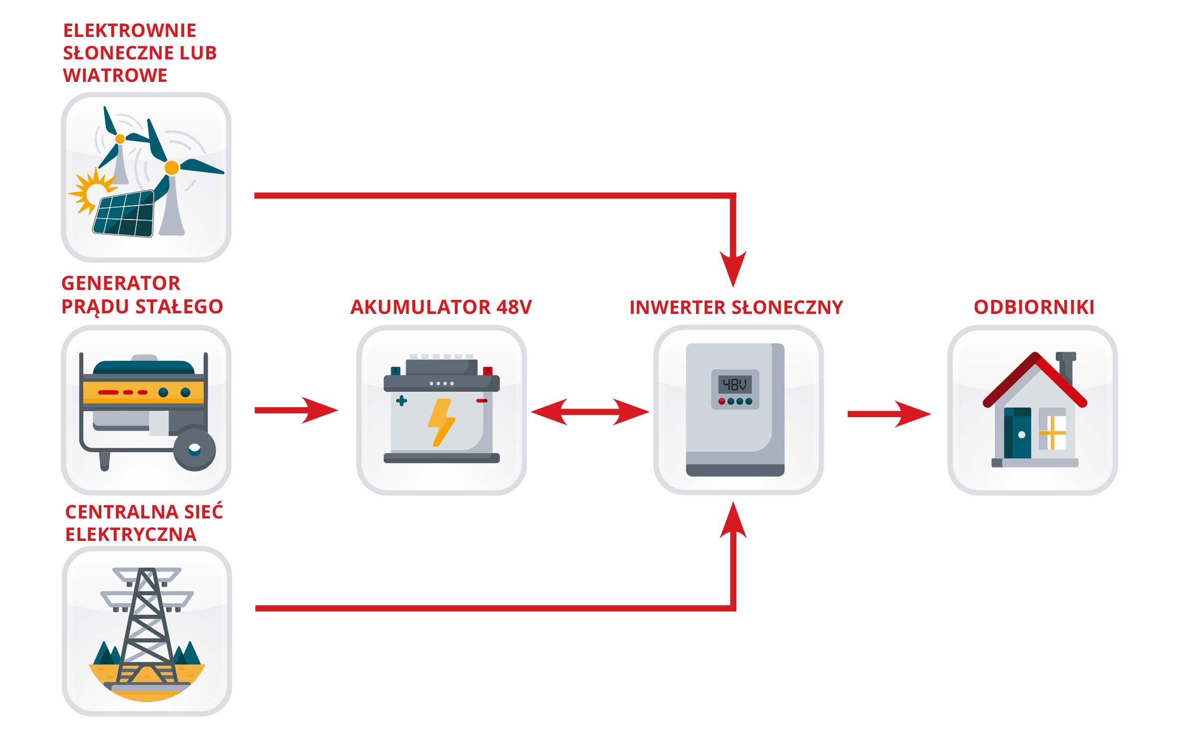 Generator łączy się bezpośrednio z akumulatorem, co znacznie ułatwia instalację. Możliwość zewnętrznego sterowania „suchymi stykami” znacznie rozszerza możliwości integracji generatora z istniejącymi systemami zasilania.
