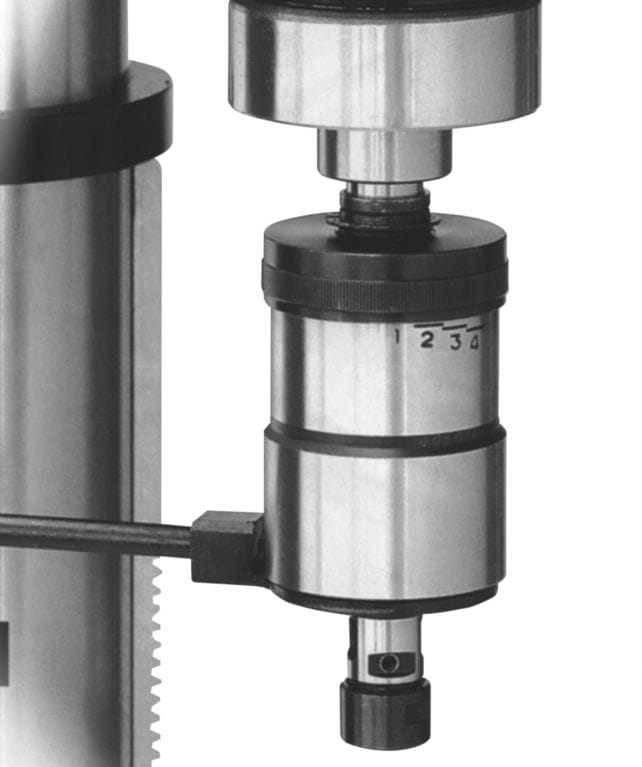 Głowica przeznaczona do gwintu prawego wiertarek stołowych, kolumnowych oraz maszyn z posuwem ręcznym i nieodwracalnym kierunkiem obrotu