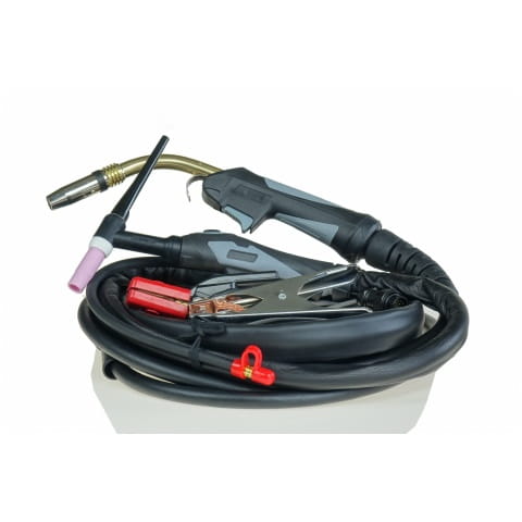 Dostawa obejmuje urządzenie z uchwytem spawalniczym MIG 24 o długości 3 metry, uchwytem TIG 26 o długości 4 metry oraz przewodem elektrodowym i masowym o długości 3 metry.