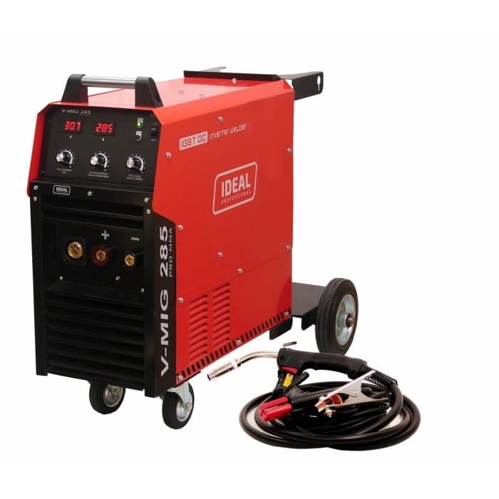 IDEAL V-MIG 285 4x4 to Profesjonalny inwertorowy półautomat spawalniczy do spawania metodą MIG-MAG drutem spawalniczym w osłonie gazu oraz metodą MMA.