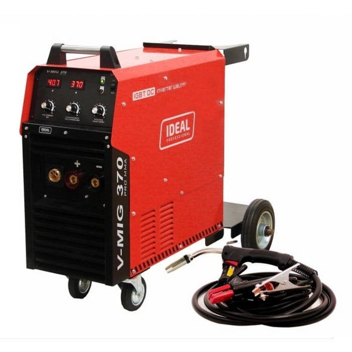 IDEAL V-MIG 370 4x4 to Profesjonalny inwertorowy półautomat spawalniczy do spawania metodą MIG-MAG drutem spawalniczym w osłonie gazu oraz metodą MMA.