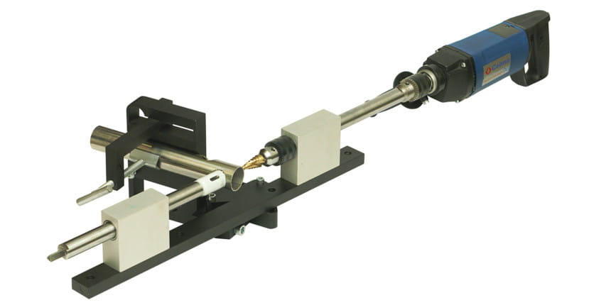 Produkowana przez firmę GLOB przystawka dwustronna do precyzyjnego wiercenia otworów przelotowych w rurach umożliwia wycięcie całego otworu lub jego części w rurach o średnicy do 75mm. Duży zakres wierconych średnic jest wyróżnikiem naszej konstrukcji.