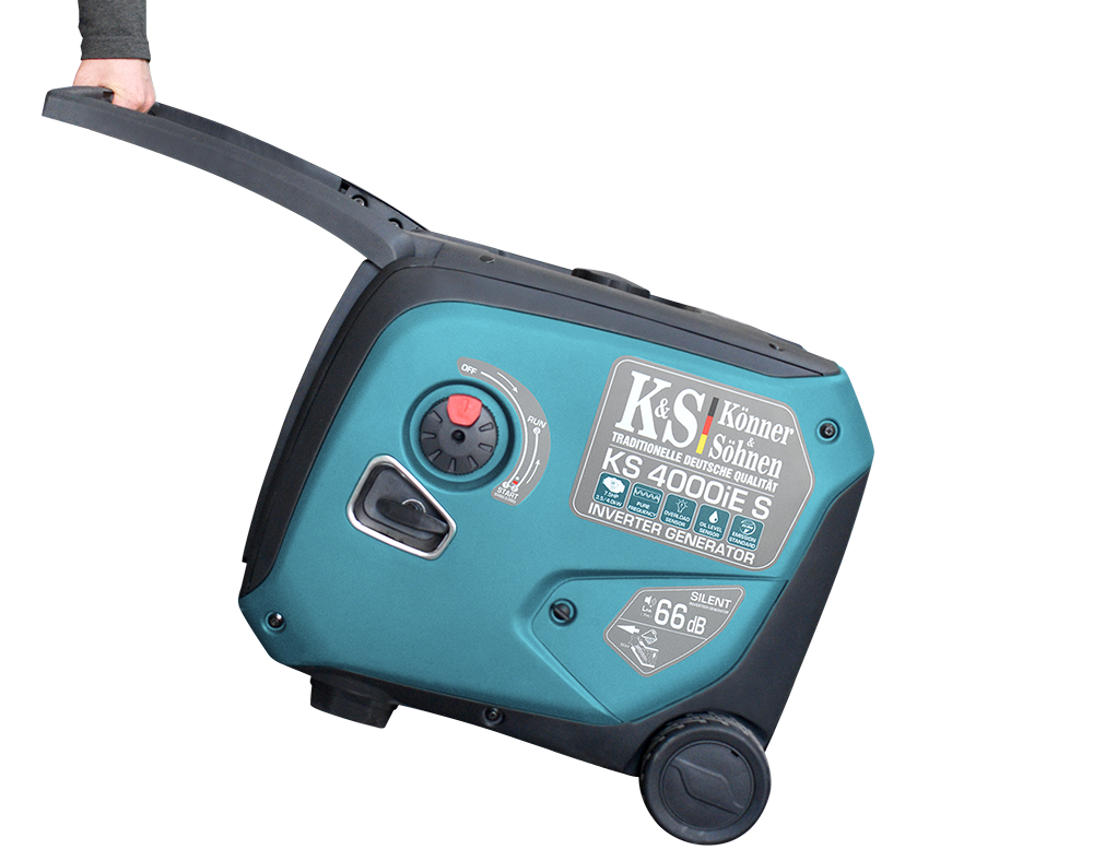 Generatory inwerterowe Könner & Söhnen są wyposażone w system transportowy ułatwiający przemieszczanie. Dwa kółka i podnoszona rączka podczas przemieszczania generatora zapewniają wygodny transport i mobilność urządzenia.