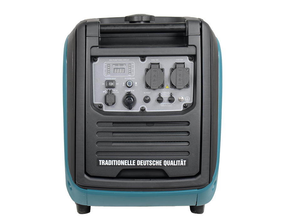 Wygodne zlokalizowanie wszystkich funkcji: wielofunkcyjny wyświetlacz LED (licznik godzin pracy, napięcie, częstotliwość), wskaźniki monitorowania stanu agregatu prądotwórczego pokazują aktualny stan pracy, automatyczne wyłączenie bezpiecznika w przypadku przeciążenia lub zwarcia, niski poziom oleju, przycisk Reset do ponownego uruchomienia systemu kontroli i wznowienia zasilania, złącze do równoległego podłączenia generatorów, dwa wyjścia USB (5V/1A, 5V/2.1 A), gniazdo 12V pozwala na podłączenie akcesoriów samochodowych, gadżetów oraz ładowanie akumulatora, gniazda 230V oraz zacisk uziemienia.