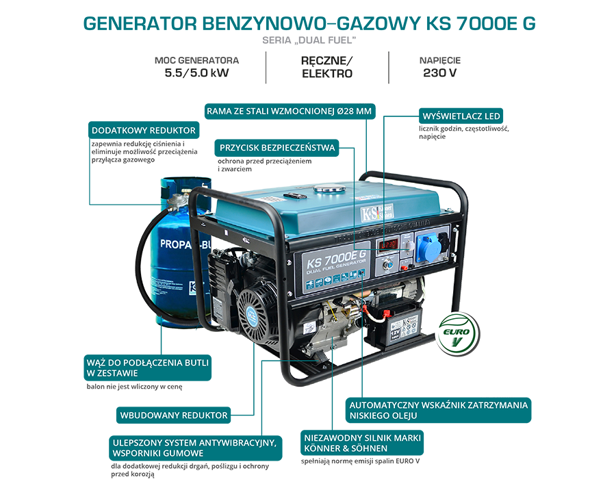 Generatory hybrydowe marki «Könner & Söhnen» serii DUAL FUEL to obecnie najbardziej popularna seria generatorów ze względu na ich oszczędność oraz przyjazność dla środowiska. Generatory tej serii mogą pracować jak na benzynie, tak i na LPG.