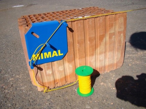 Limal budowlany LBM składa się z dwóch uchwytów i rolki sznurka o długości 50m. i służy do wyznaczania linii prostych podczas układania krawężników, kostki brukowej, przy pracach typu murowanie.