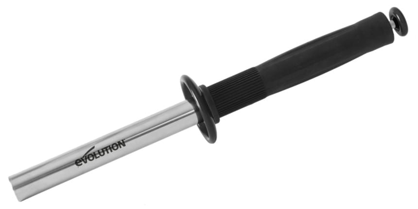 Ogumowany uchwyt zapewnia komfort użytkowania, a duża osłona zapewnia bezpieczeństwo użytkownika przed kontaktem z wiórami.
