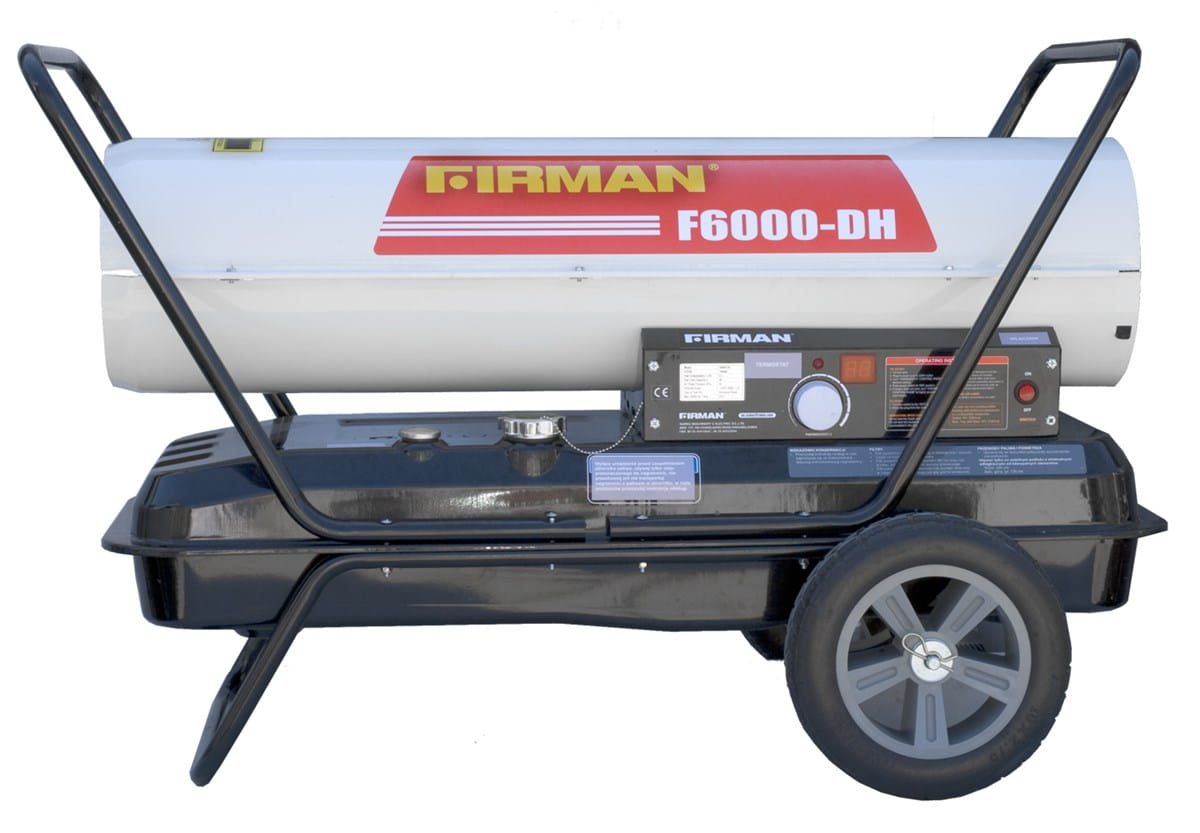 Nagrzewnica olejowa FIRMAN F6000-DH o mocy 55,8 kW z termostatem i z wyświetlaczem.