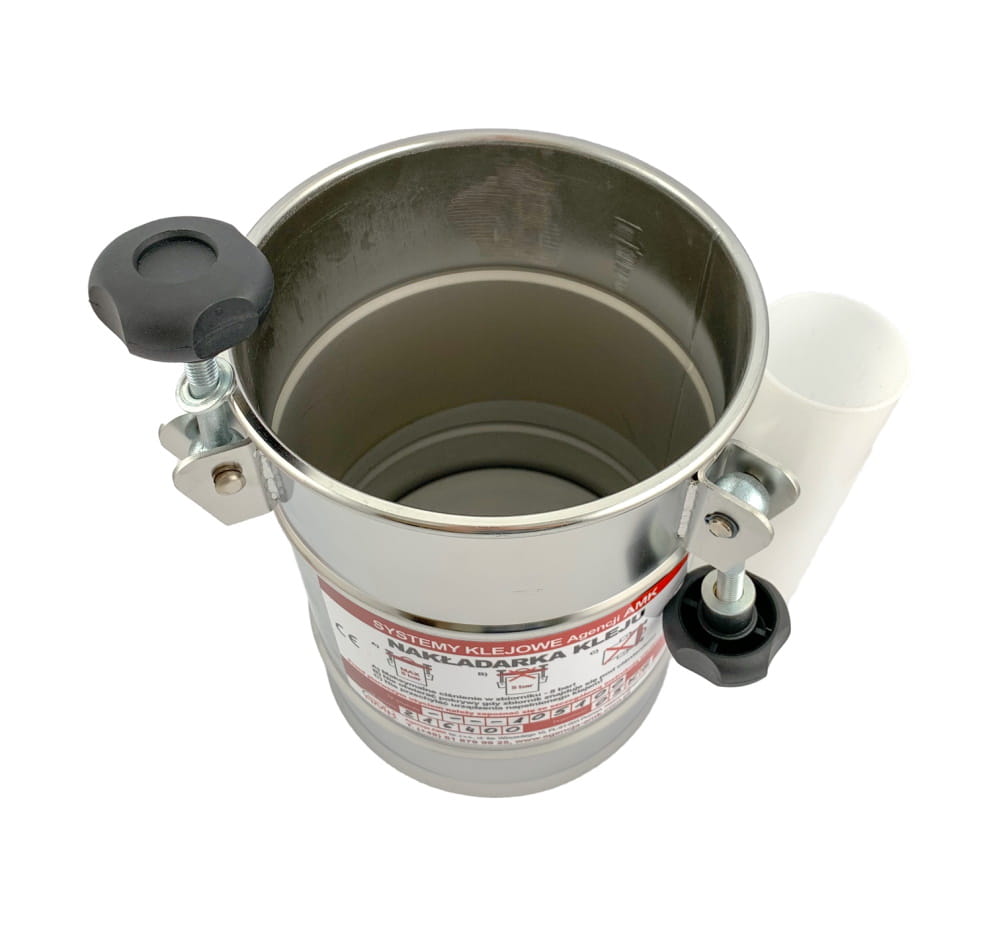 Wielkość zbiornika nakładarki dobieramy tak aby klej wystarczył najlepiej na pełną zmianę produkcyjną lub określoną partię materiału. Zyskujemy w ten sposób cenne minuty uciekające na jego zbyt częste napełnianie. To rozwiązanie daje możliwość pełnej kontroli zużycia kleju. Na wykonanie określonej partii elementów, na ilość godzin pracy ma wystarczyć dana ilość kleju. Oczywiście możemy dobrać zbiornik tak, aby wystarczył na kilka dni. Dopóki urządzenie jest szczelnie zamknięte nie ma ryzyka utwardzenia kleju. Nawet jeśli nakładarka nie będzie używana kilka dni nie ma potrzeby opróżniania zbiornika. W przypadku przerw w pracy czyścimy tylko dyszę klejową a pistolet zanurzamy w pojemniku z wodą zawieszonym na zbiorniku. Wracając do pracy wycieramy pistolet, zakładamy dyszę i do dzieła.