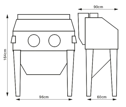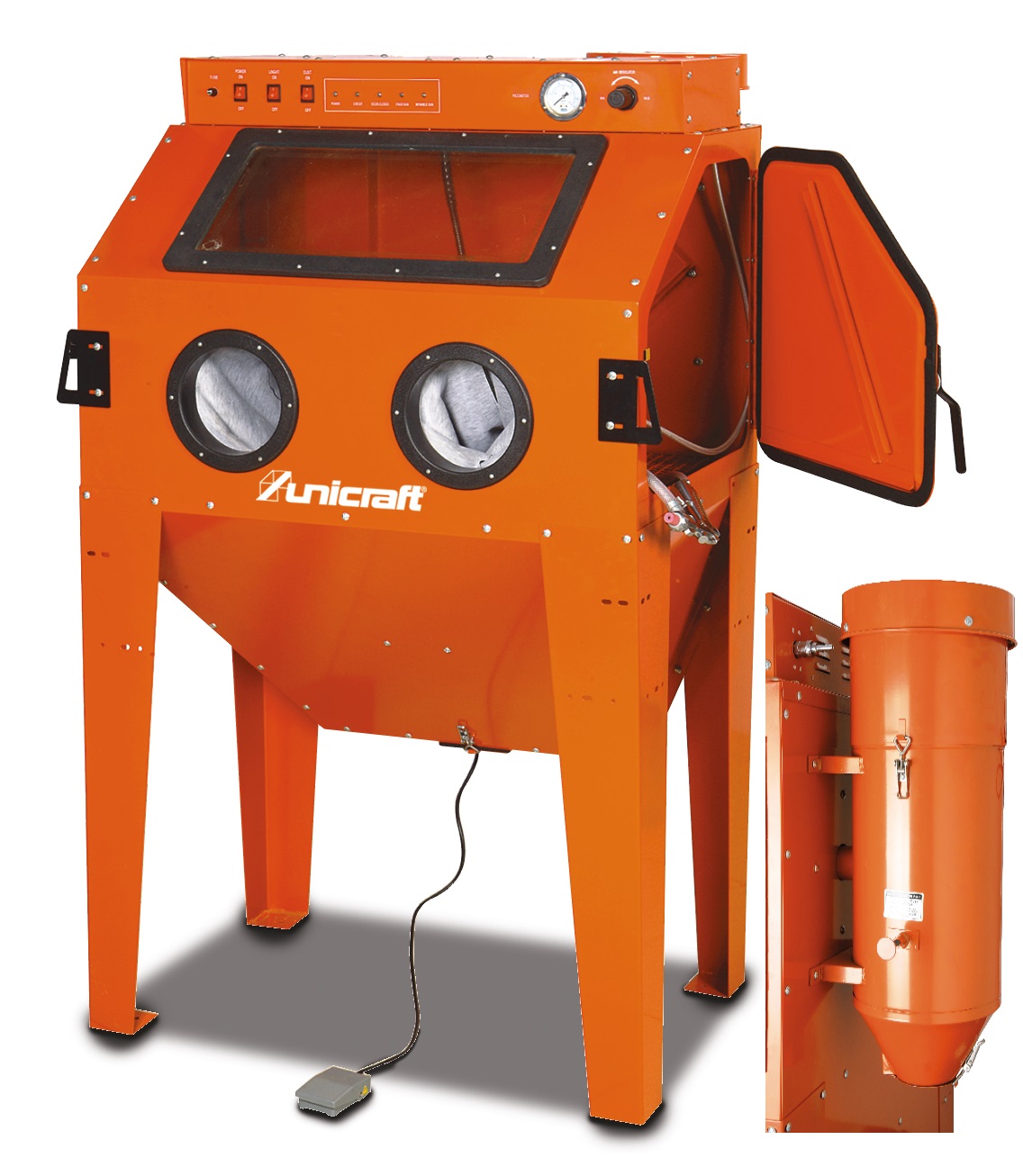 Producent: UNICRAFT :: Pojemność: 310l :: Przestrzeń robocza: 945x605x605 :: Zużycie powietrza: 200-350l :: Masa obrabianego materiału MAX: 120kg
