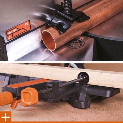 Urządzenie zapewnia możliwość cięcia materiałów o maksymalnym przekroju 300x80mm. Idealnie sprawdzi się podczas cięcia rur miedzianych i z tworzyw sztucznych, profili aluminiowych, płyt MDF, deski rusztowań, listew przypodłogowych, twardego drewna jak jesion i dębu oraz wielu innych materiałów.