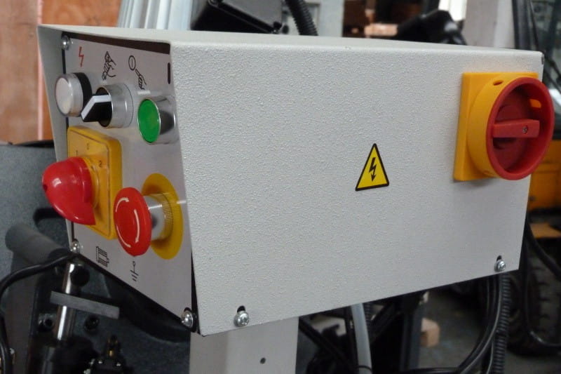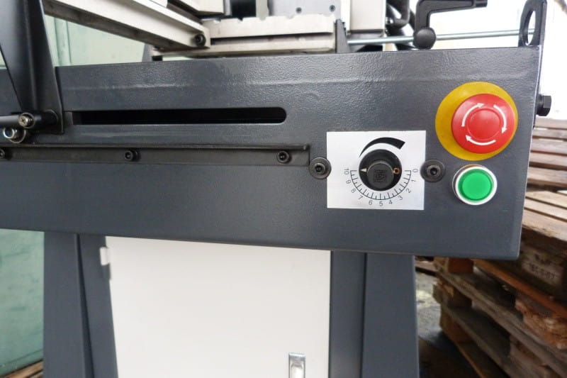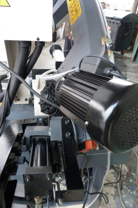 Napęd taśmy tnącej (dwie prędkości cięcia) jest zapewniany przez silnik 2-biegunowy z motoreduktorem