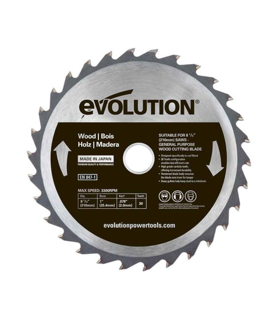1 x piła widiowa do cięcia drewna Evolution 210 mm - 30 z (opakowanie blister) przeznaczona do pilarek.