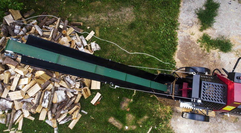 Piło-łuparka wyposażona jest w podajnik taśmowy o długości 3,2 m który może transportować obrobione drewno bezpośrednio na przyczepę, maksymalna wysokość podawania drewna przez taśmociąg to 2 m