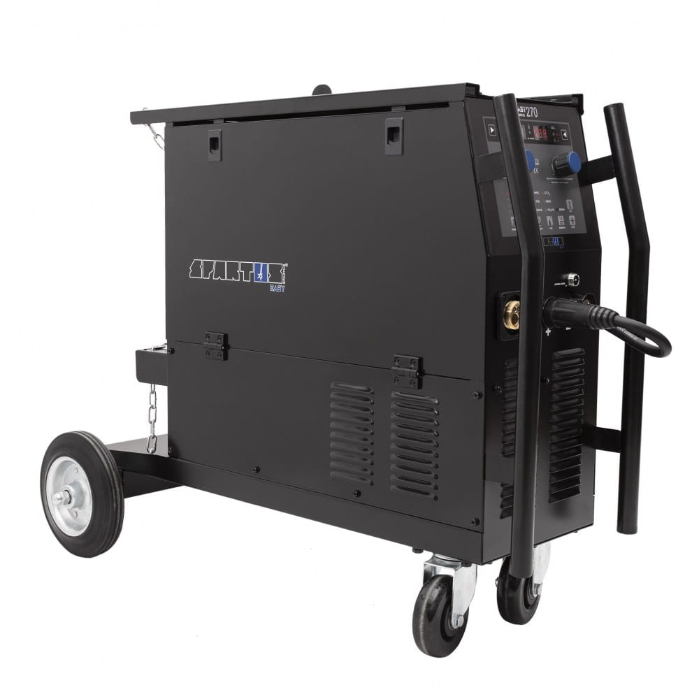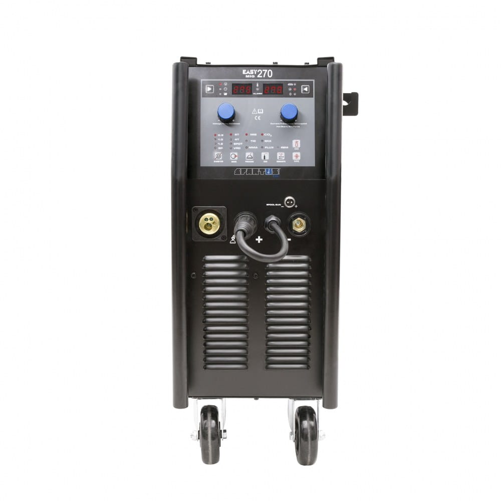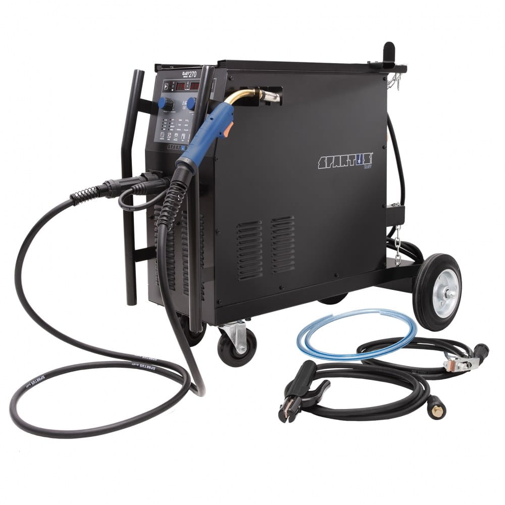 SPARTUS® EasyMIG 270 to kompakt, zaprojektowany przede wszystkich pod kątem wydajnego spawania różnego rodzaju konstrukcji stalowych i pracy w trudnych warunkach warsztatowych.