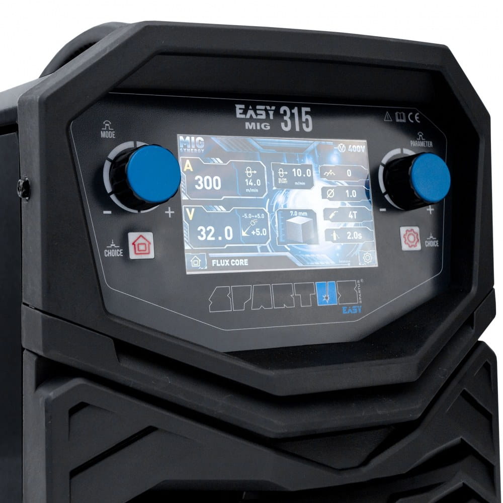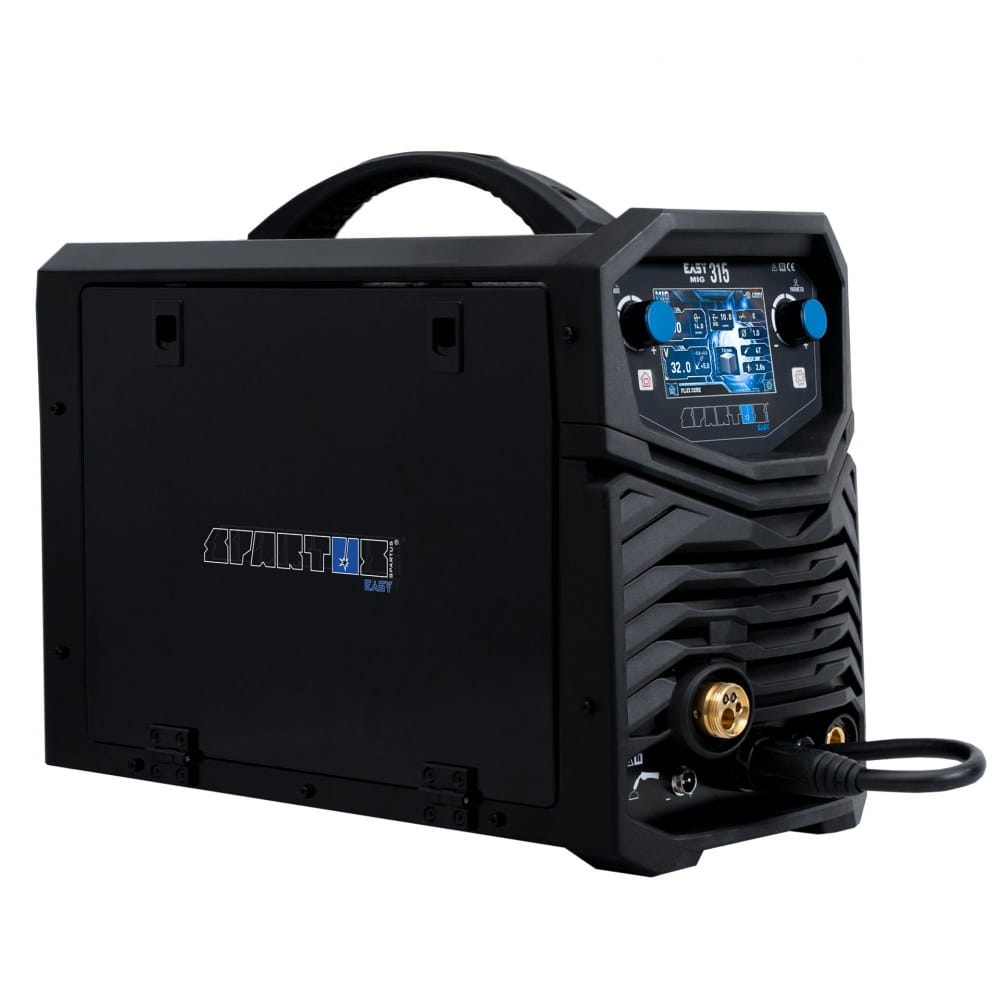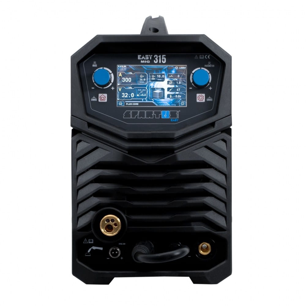 SPARTUS® EasyMIG 315 to nowoczesny, inwertorowy półautomat spawalniczy, skonstruowany w oparciu o tranzystory IGBT. Umożliwia spawanie elektrodą topliwą w osłonie gazów obojętnych i aktywnych (MIG/MAG), spawanie elektrodą otuloną (MMA) oraz spawanie TIG Lift z zajarzeniem łuku przez potarcie. Dodatkowo urządzenie, dzięki możliwości zmiany biegunowości spawania, umożliwiają spawanie drutem samoosłonowym bez gazu.