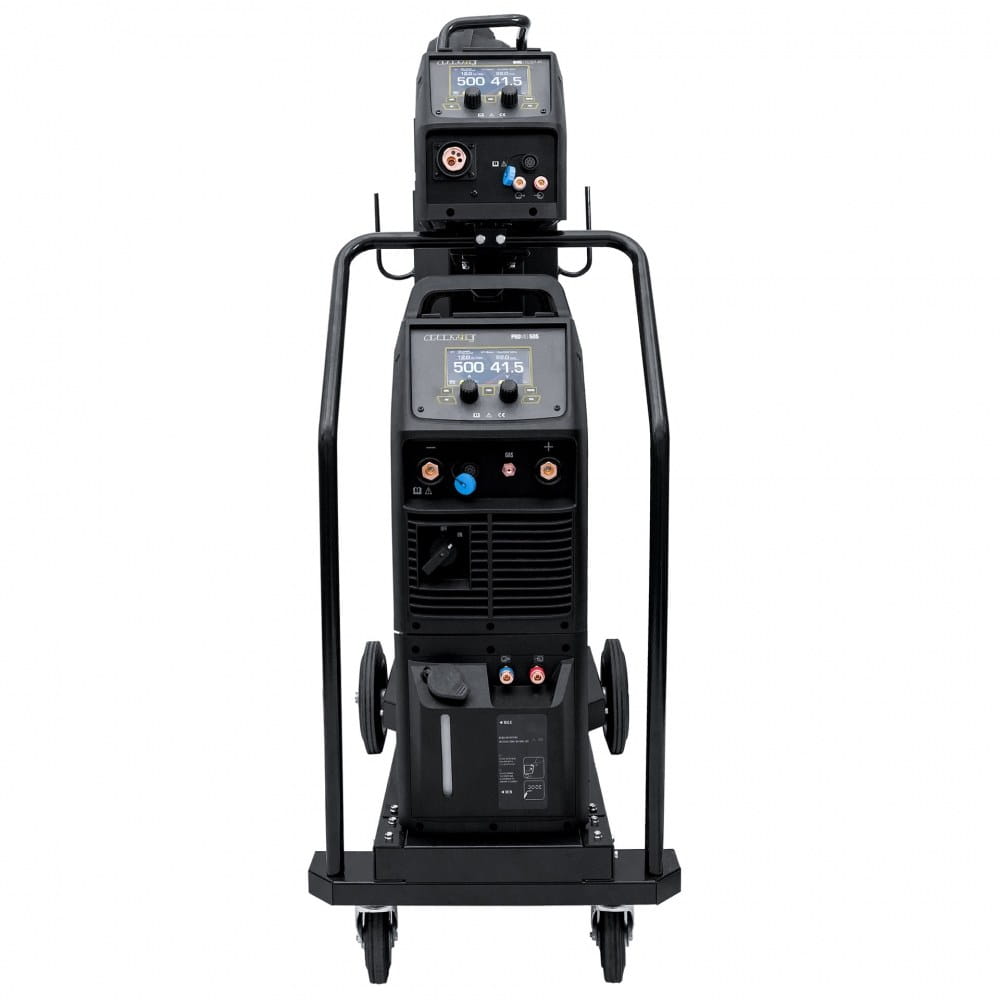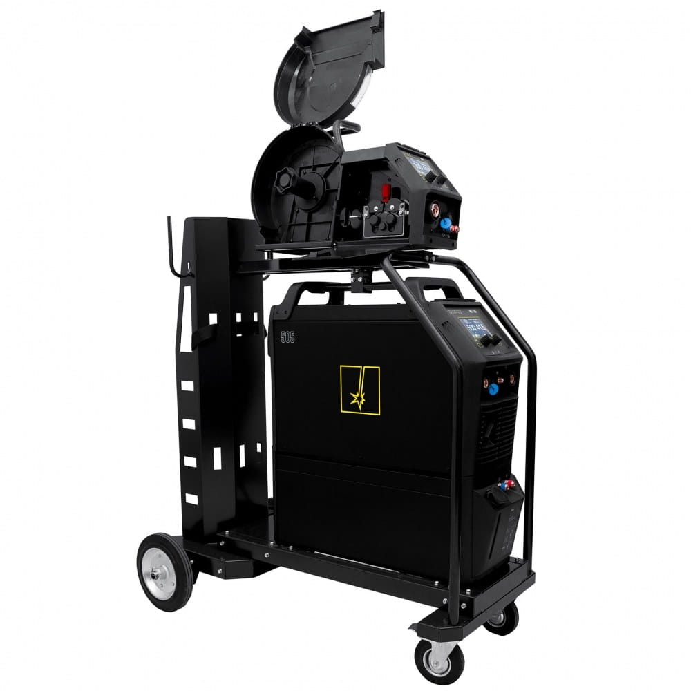 Wyposażenie standardowe: • ProMIG 505 • Wydzielony podajnik drutu 4R • Chłodnica • Zestaw jezdny • Przewód masowy z zaciskiem śrubowo-kleszczowym 3m • Instrukcja obsługi