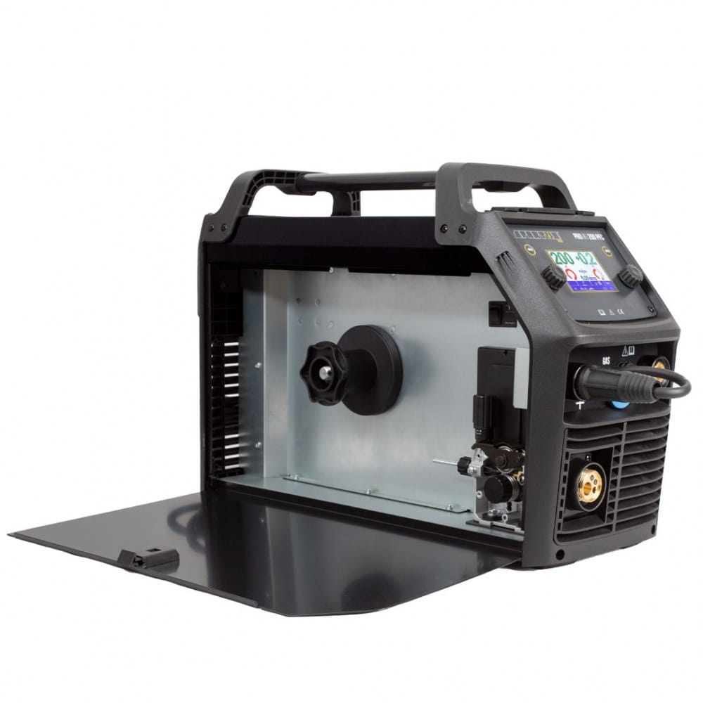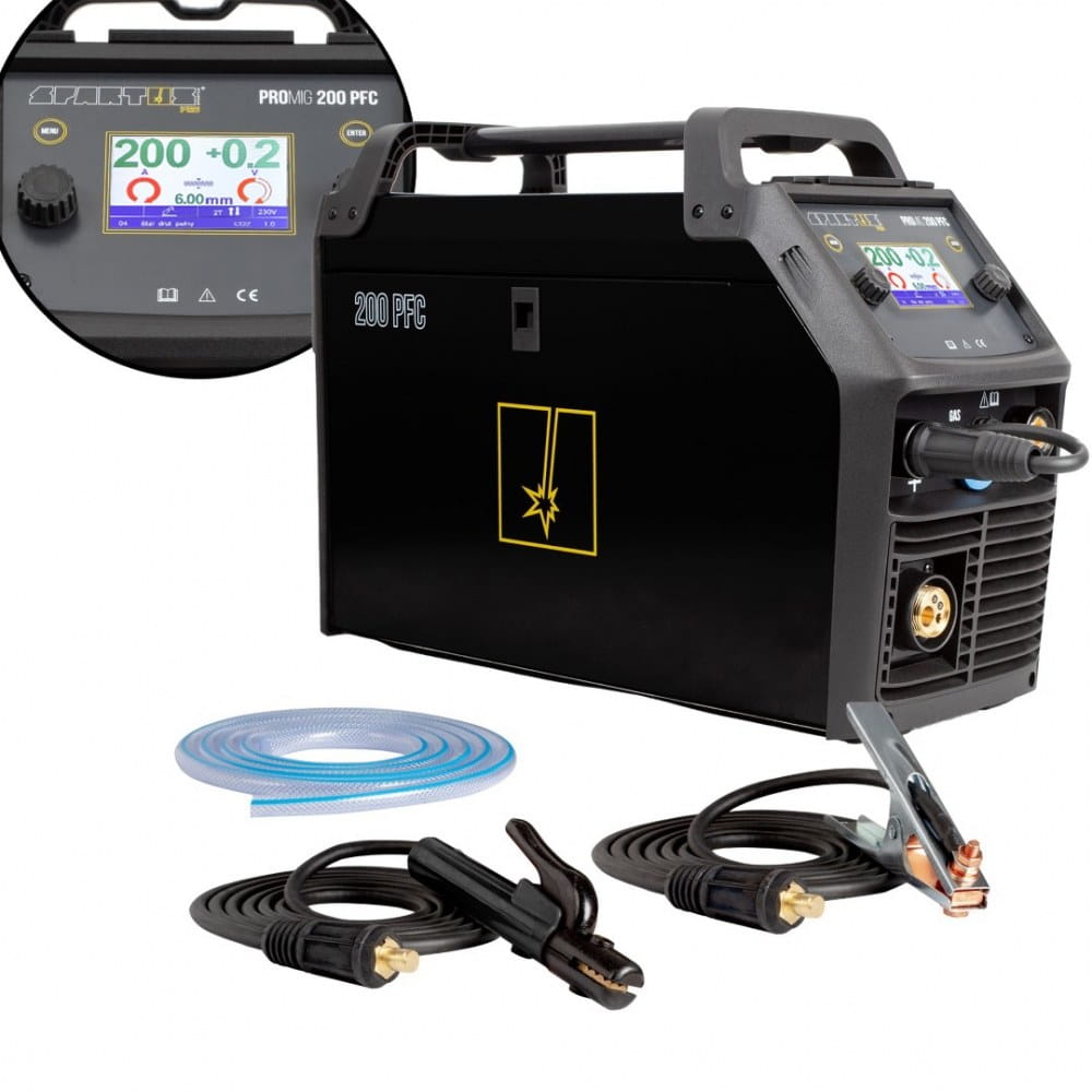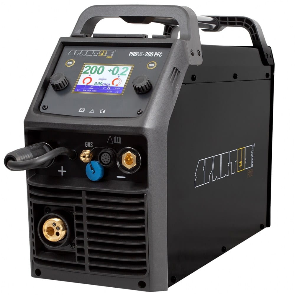 SPARTUS® ProMIG 200PFC to profesjonalny, przenośny, wieloprocesowy półautomat spawalniczy. Umożliwia spawanie metodami MIG/MAG, TIG Lift oraz MMA maksymalnym prądem spawania o natężeniu 200A.