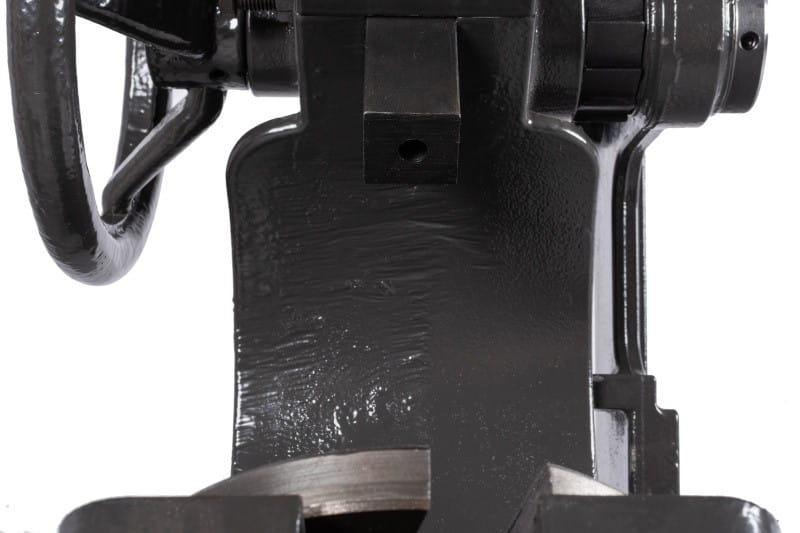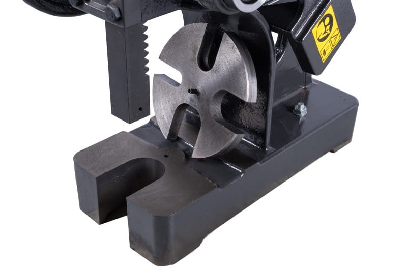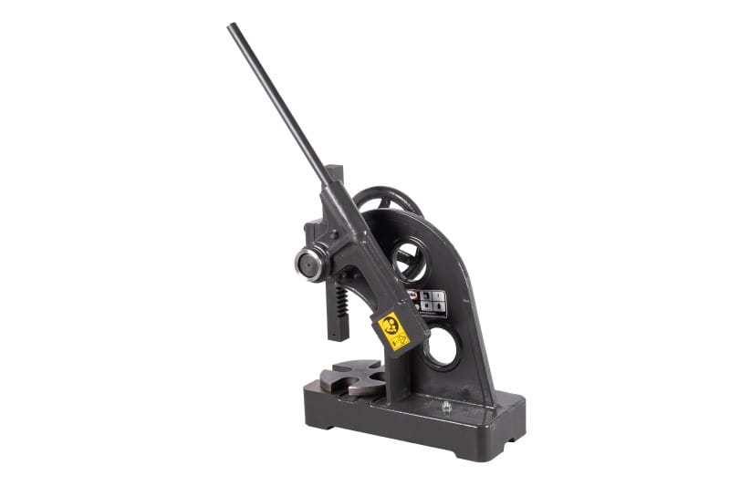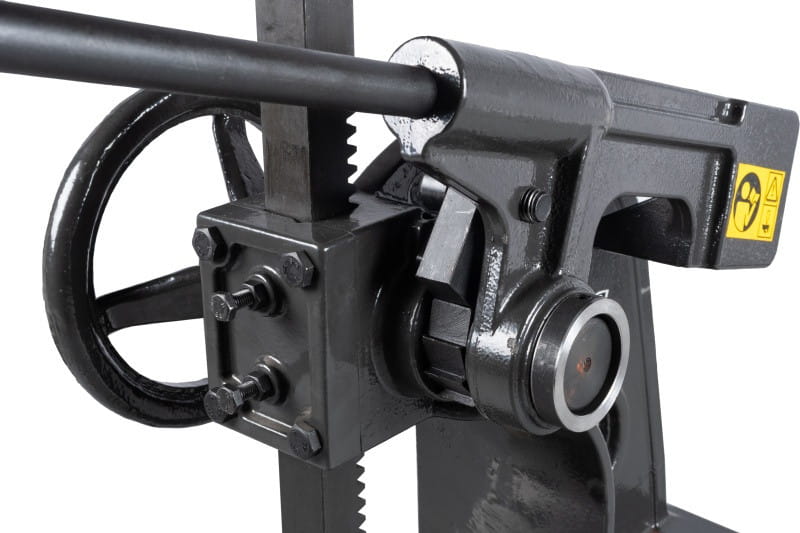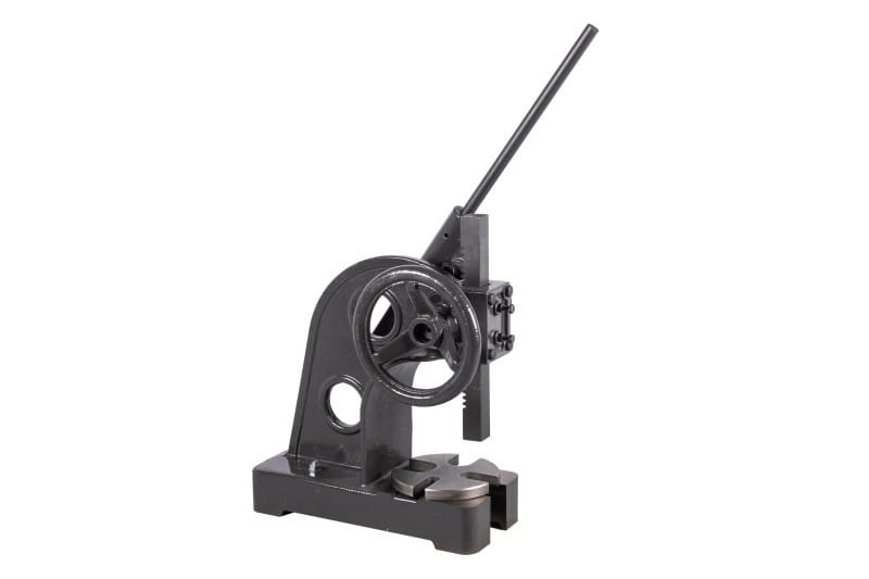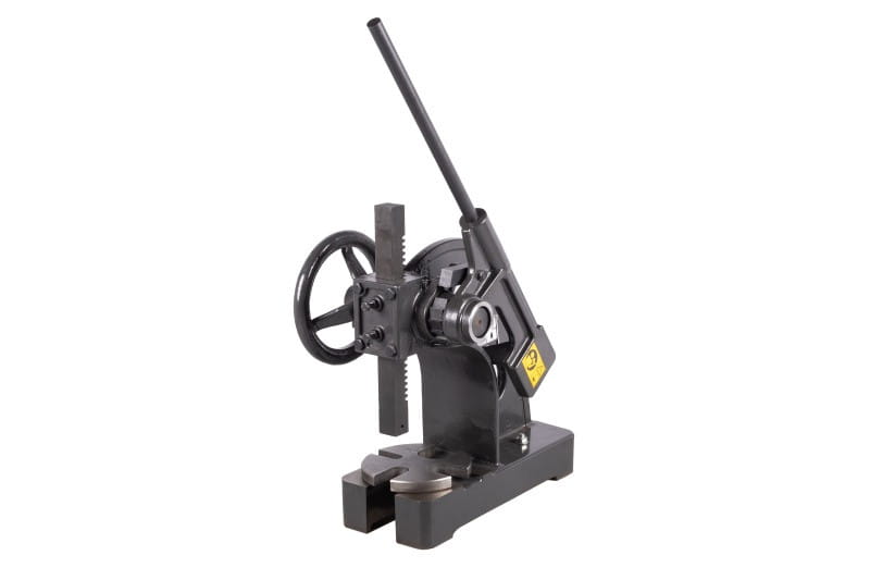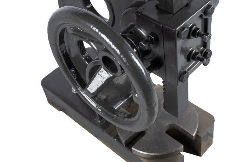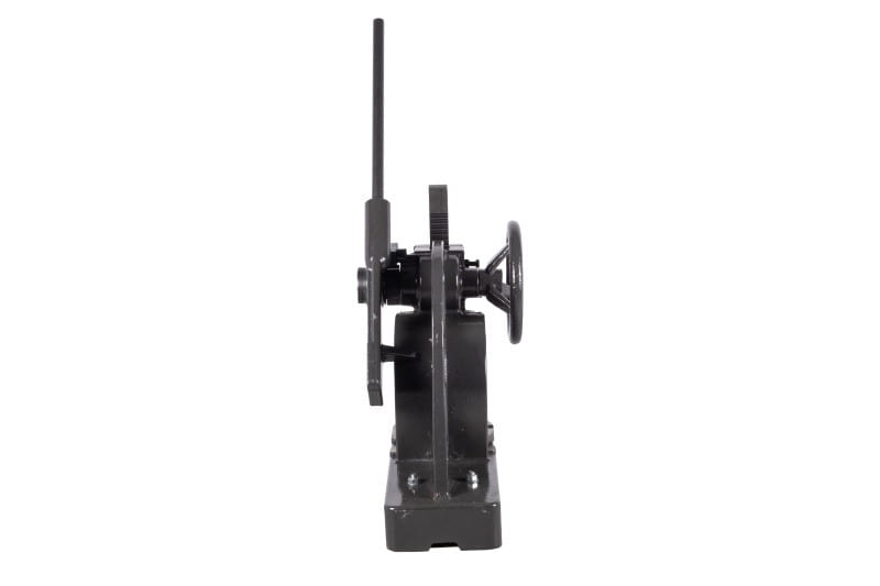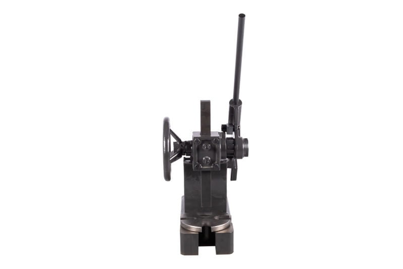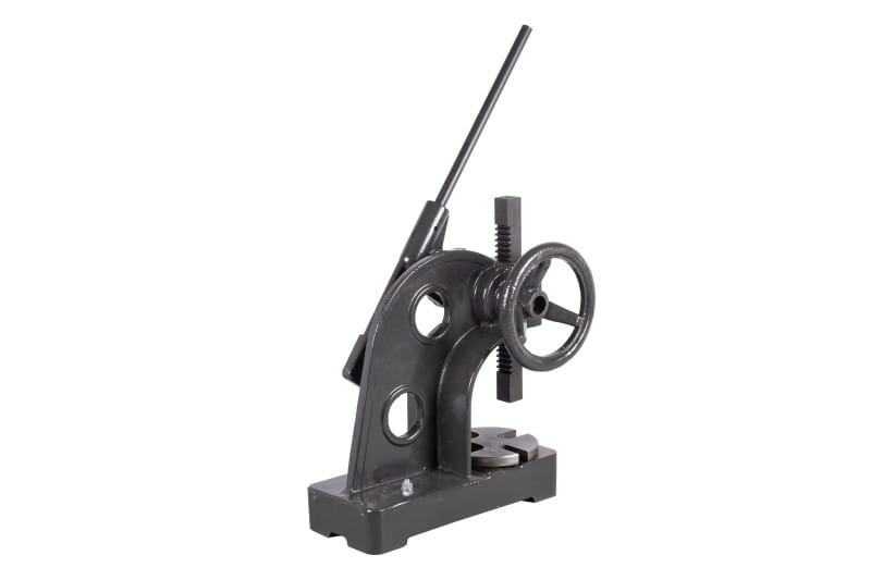 Zbudowana jest z żeliwnego korpusu, stołu i dwóch zębatych elementów, które poprzez dźwignię z grzechotką zapewniają siłę nacisku prasy