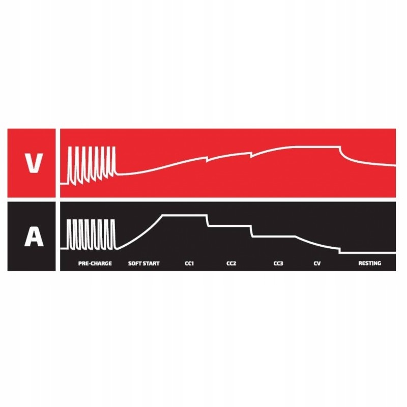 - ETAP 1 - diagnostyka - analizuje akumulator i sprawdza, czy może przyjąć prąd ładowania, zapobiega ładowaniu uszkodzonego akumulatora