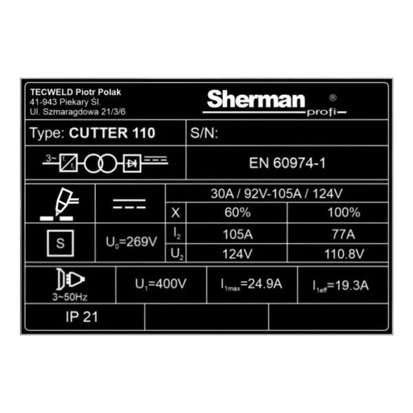 Przecinarka plazmowa CUTTER 110 SHERMAN