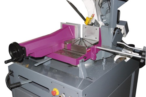 Przecinarka taśmowa S 350 DG charakteryzuje się dwoma prędkościami bimetalicznej taśmy tnącej, prowadzonej przez prowadnicę opartej na siedmiopunktowych łożyskach kulkowych. Posiada cyfrowy odczyt prędkości, co jest niezwykłym udogodnieniem dla użytkownika.