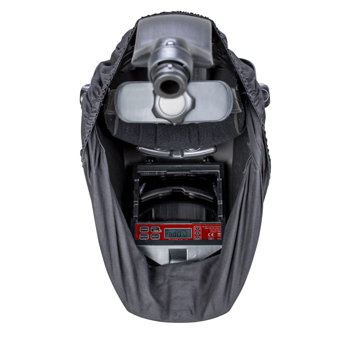 System filtrów powietrza dostarcza spawaczowi przefiltrowane, czyste powietrze, zapobiegając wdychaniu niebezpiecznych i szkodliwych dla zdrowia drobinek i oparów spawalniczych.