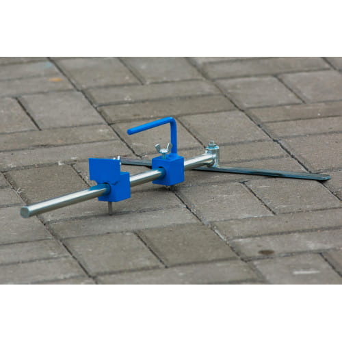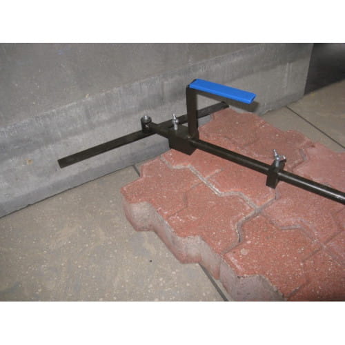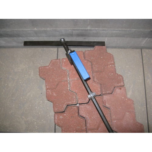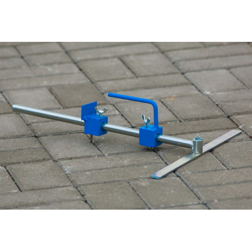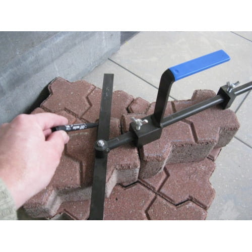 Przymiar brukarski ułatwia precyzyjne określenie kąta i długości docinanej kostki.