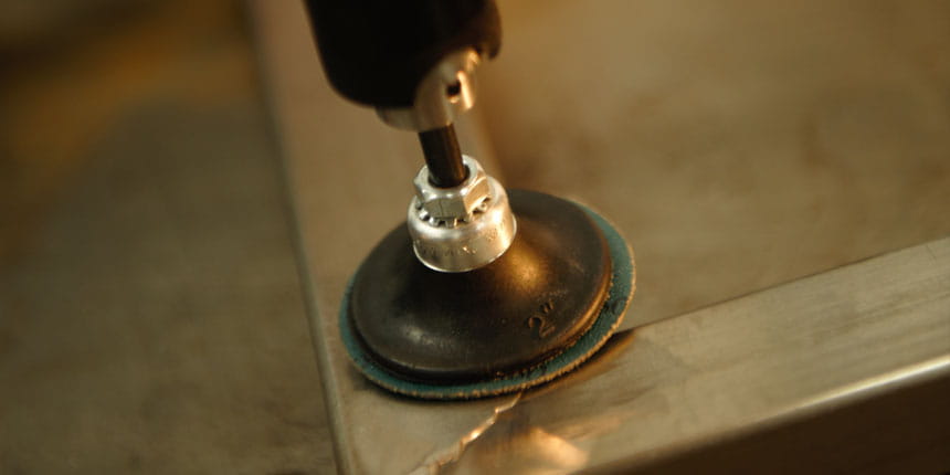 Przystawka jest wyposażona w uchwyt do szlifierki z systemem obrotowym (mocowanym do stołu lub imadła), który sprawi, że szlifierka podąży za operatorem podczas pracy.