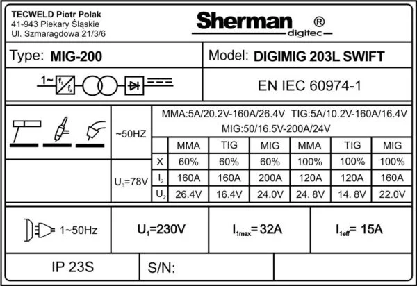 Spawarka DIGIMIG 203L SWIFT SHERMAN