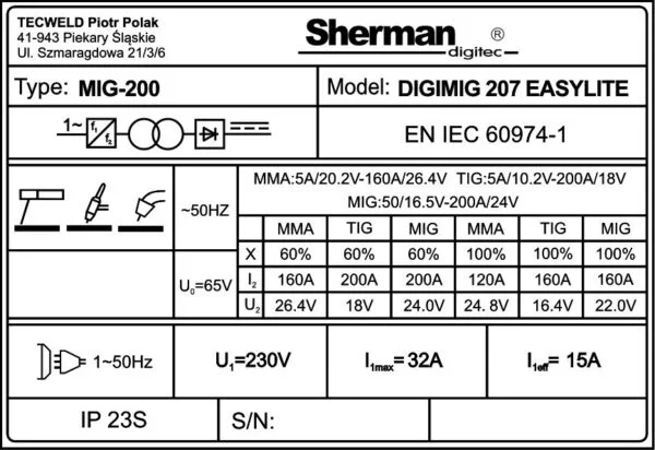Spawarka DIGIMIG 207 EASYLITE SHERMAN