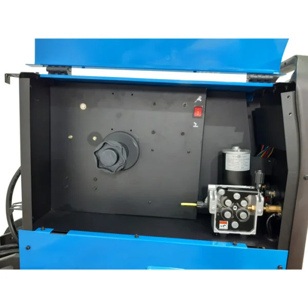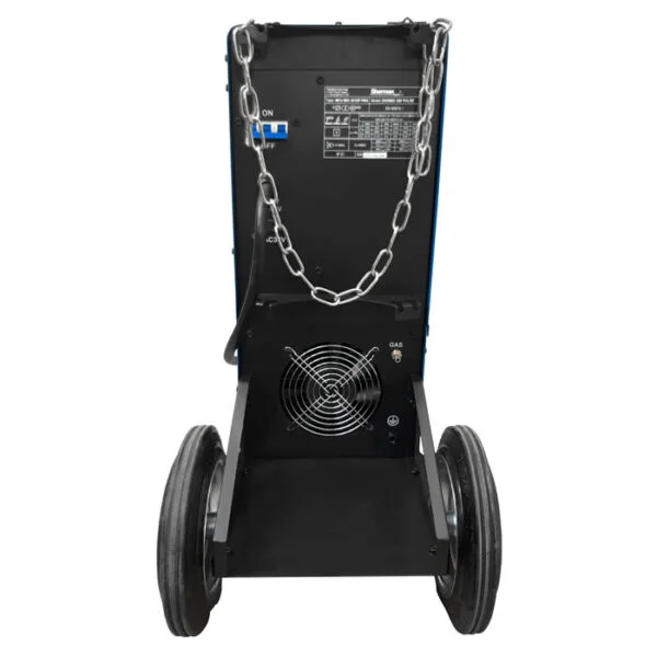 Spawarka wyposażona jest w unikatowy uchwyt MIG o długości 4m z pokrętłem w rękojeści umożliwiającym zdalną regulację napięcia/prądu spawania podczas pracy w trybie synergicznym.