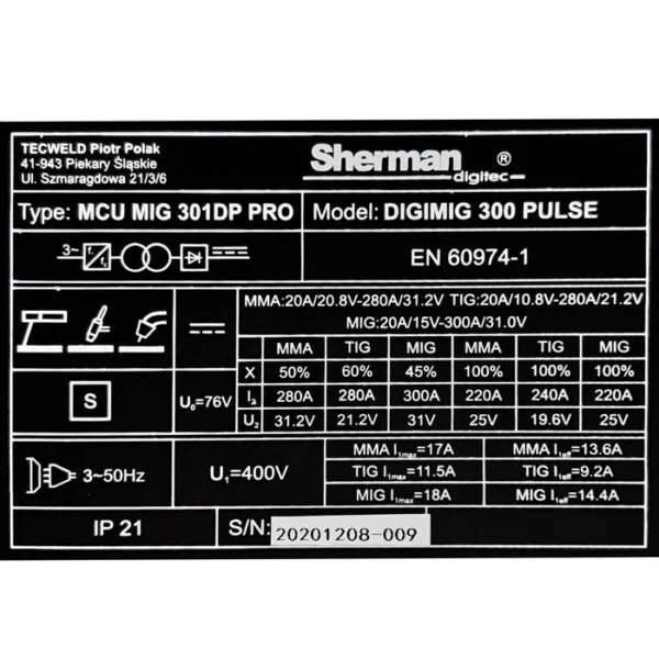 Spawarka DIGIMIG 300 Pulse/4R SHERMAN