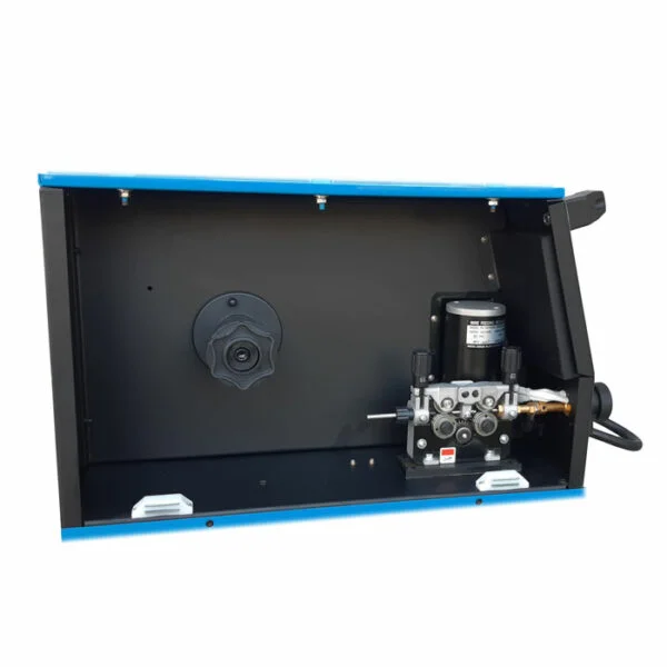 Spawarka umożliwia podłączenie uchwytu typu Spool Gun (SG) z zamontowanym w nim mini podajnikiem drutu i szpulą D100 drutu stalowego lub kolorowego.