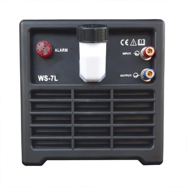 Do chłodzenia uchwytu spawalniczego dołączona jest dedykowana do tej spawarki wydajna chłodnica WS-7L. W budowie chłodnicy wykorzystano komponenty sprawdzonej chłodnicy WRC-300B, zmianie uległa odbudowa oraz zbiornik płynu. Zastosowanie wymiennika ciepła zbudowanego na miedzianej wężownicy i pompy ze stali nierdzewnej zdecydowanie zwiększają skuteczność chłodzenia oraz przedłużają żywotność urządzenia. Całość zabudowana jest na stabilnym wózku, z bardzo praktyczną półką na akcesoria i narzędzia oraz wieszakami na uchwyt i przewody spawalnicze.