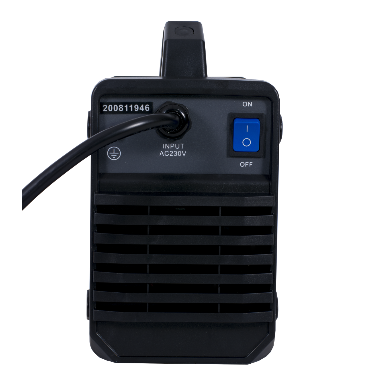 - Regulowana funkcja HOT START - polegającą na chwilowym zwiększeniu prądu spawania ponad ustawioną wartość w momencie zajarzenia łuku, Zapobiega to zjawisku "przyklejania się " elektrody w początkowej fazie spawania, ułatwiając rozpoczęcie całego procesu,