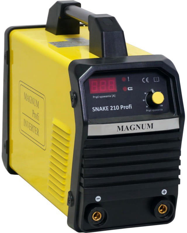 Urządzenie inwerterowe SNAKE210 PROFI marki MAGNUM jest lekkim, przenośnym źródłem energii. Służy do spawania elektrodami otulonymi różnych gatunków stali niestopowych, niskostopowych, wysokostopowych, nierdzewnych, żaroodpornych, miedzi, żeliwa. Urządzenie charakteryzuje się dużą sprawnością 200 A/60% oraz znakomitą charakterystyką łuku dla elektrod rutylowych i zasadowych.