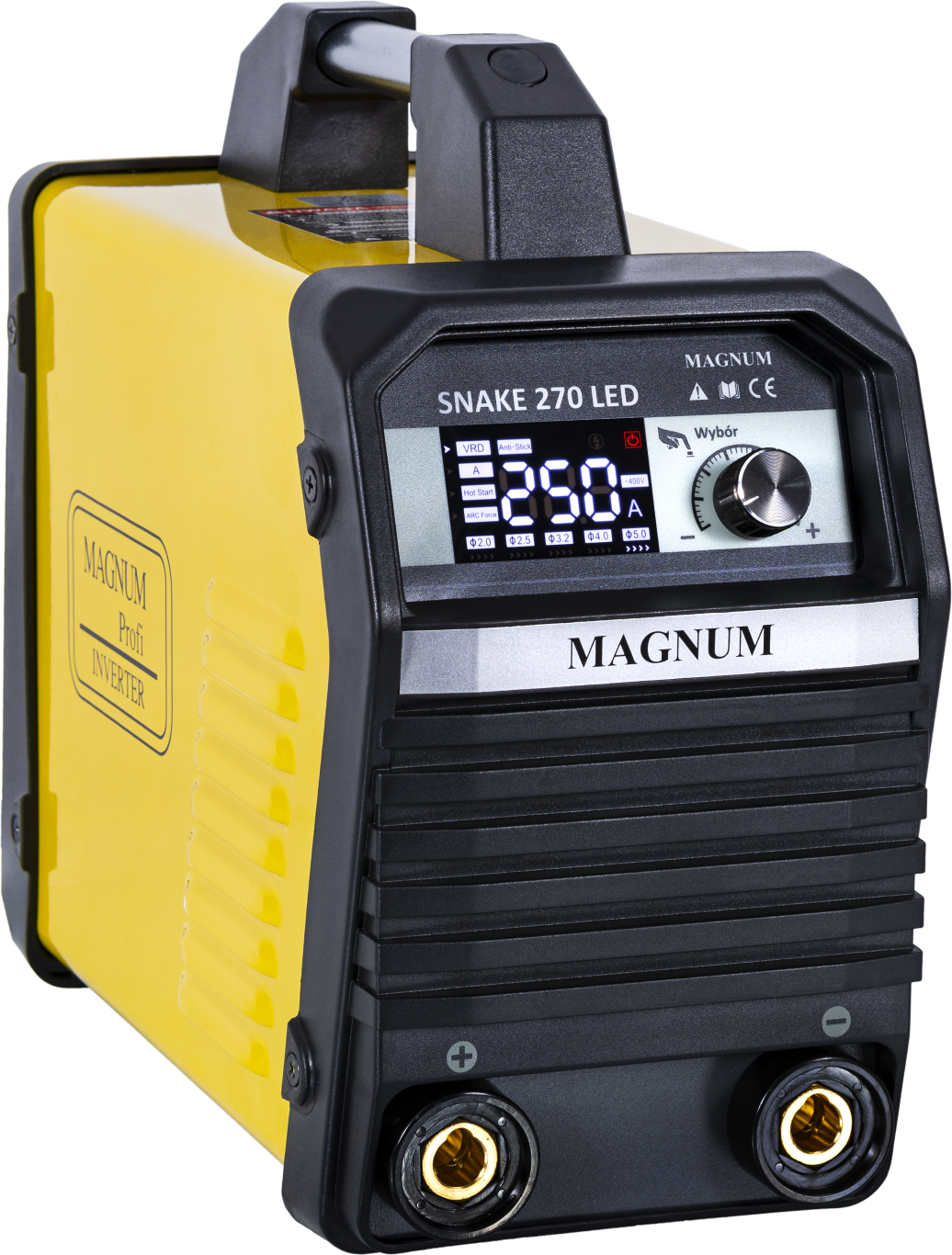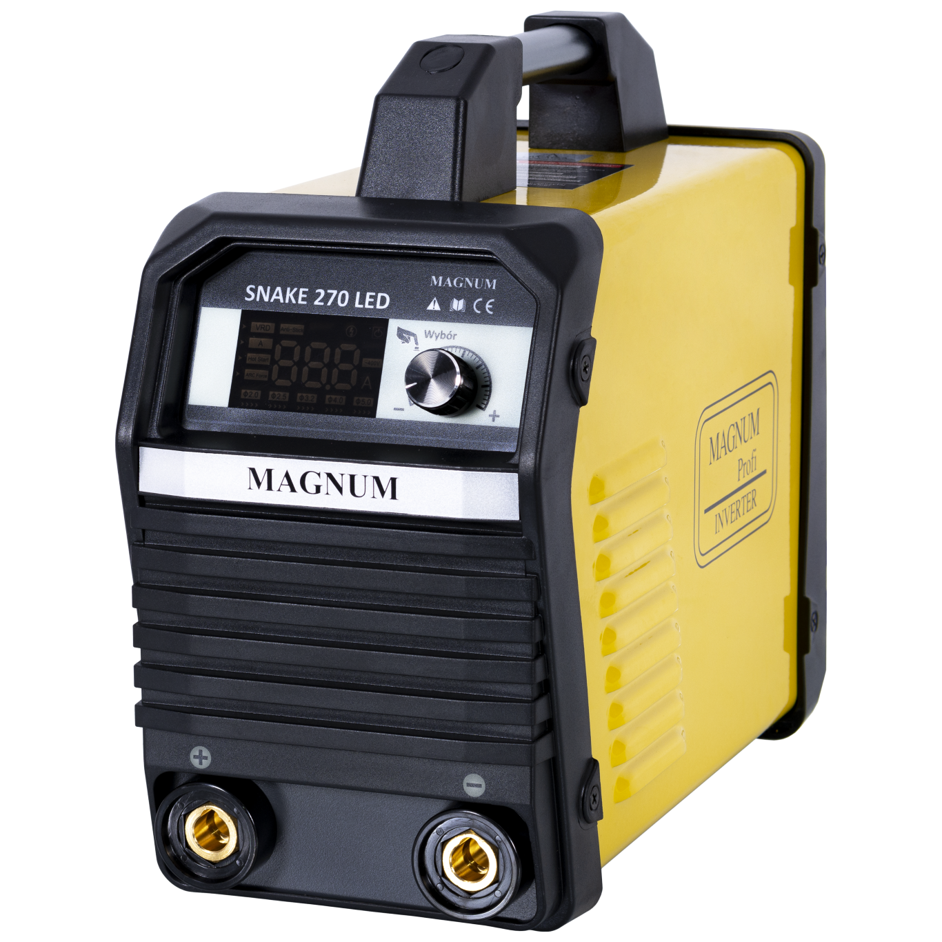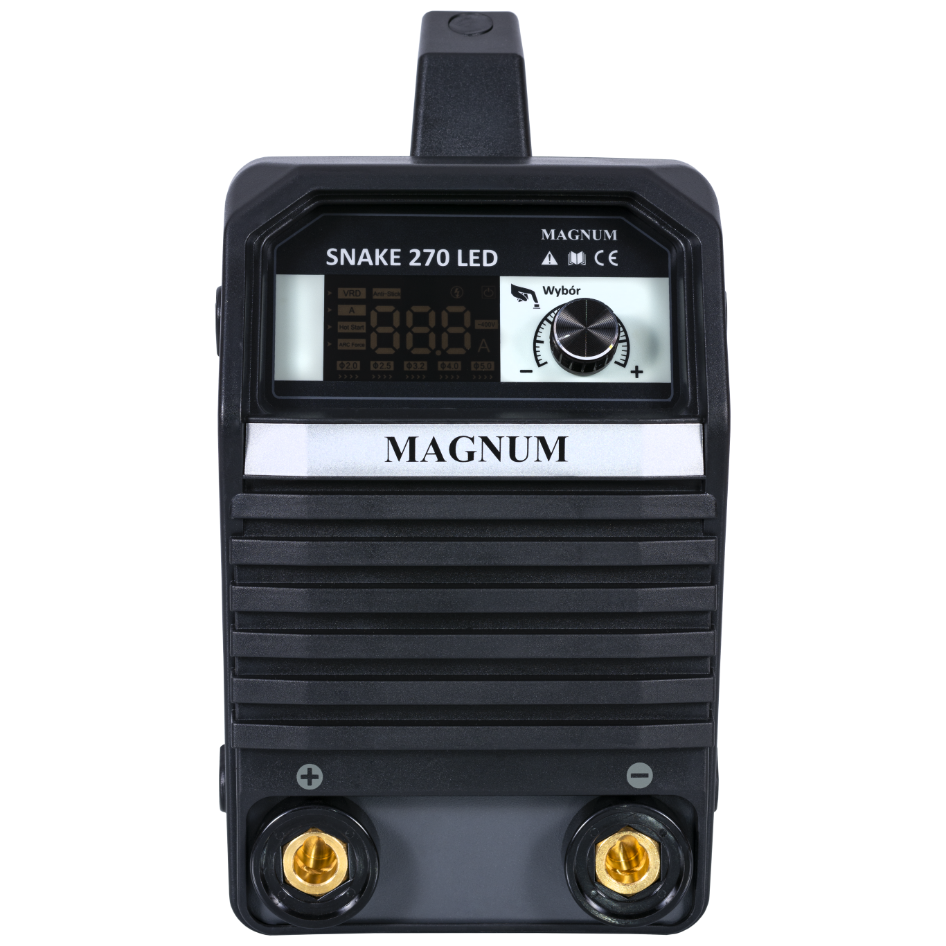 Urządzenie SNAKE 270 LED marki MAGNUM jest lekkim, przenośnym źródłem energii wykonanym w technologii inwertorowej. Urządzenie zasilane jest z sieci trójfazowej 400V,posiada maksymalny prąd spawania 250A oraz wysoką 60% sprawność. SNAKE 270 wyposażony jest w czytelny multifunkcyjny wyświetlacz LED z intuicyjny,łatwy w obsłudze panel sterowani.