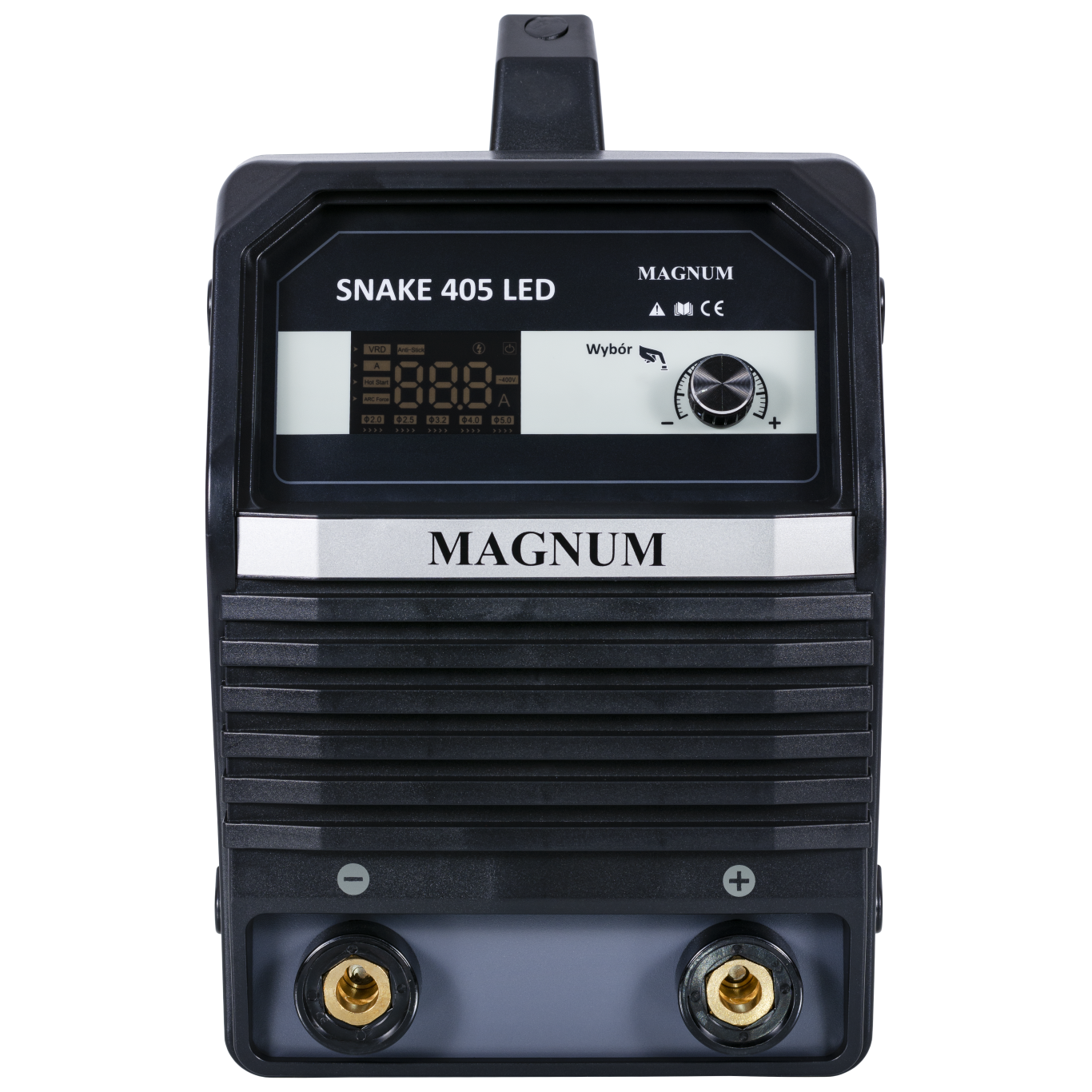 Urządzenie SNAKE 405LED marki MAGNUM jest lekkim, przenośnym źródłem energii wykonanym w technologii inwertorowej. Urządzenie zasilane jest z sieci trójfazowej 400V,posiada maksymalny prąd spawania 400A oraz wysoką 60% sprawność. SNAKE 405 wyposażony jest w czytelny multifunkcyjny wyświetlacz LED z intuicyjny,łatwy w obsłudze panel sterowani.