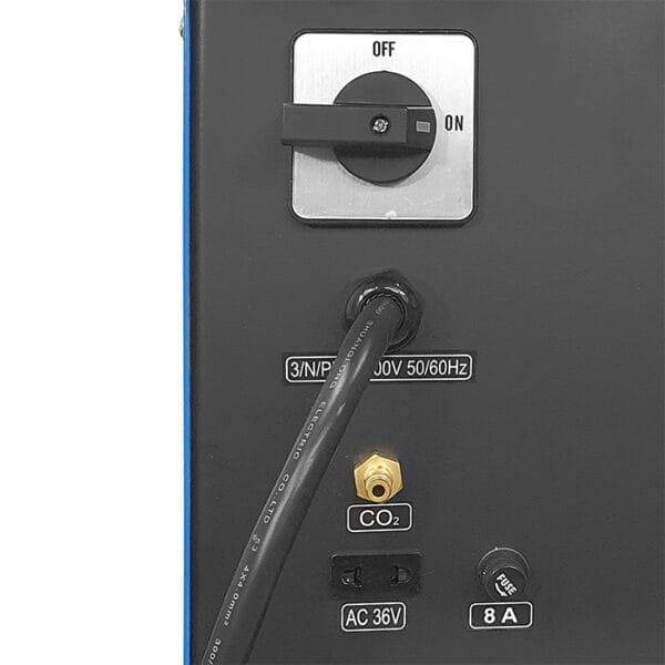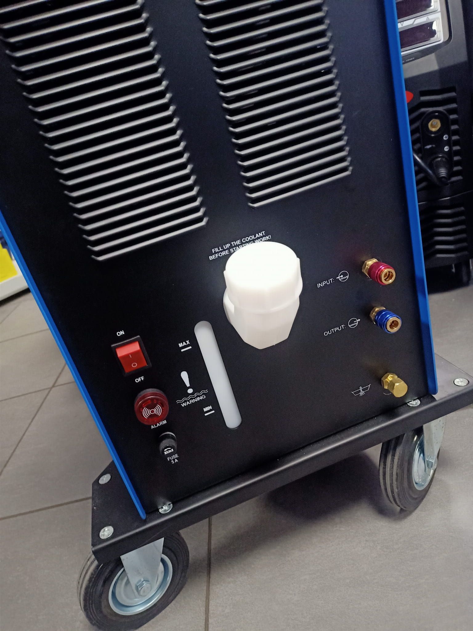 Urządzenie wyposażone jest w zintegrowaną chłodnicę i uchwyt do spawania metodą MIG/MAG chłodzony cieczą.