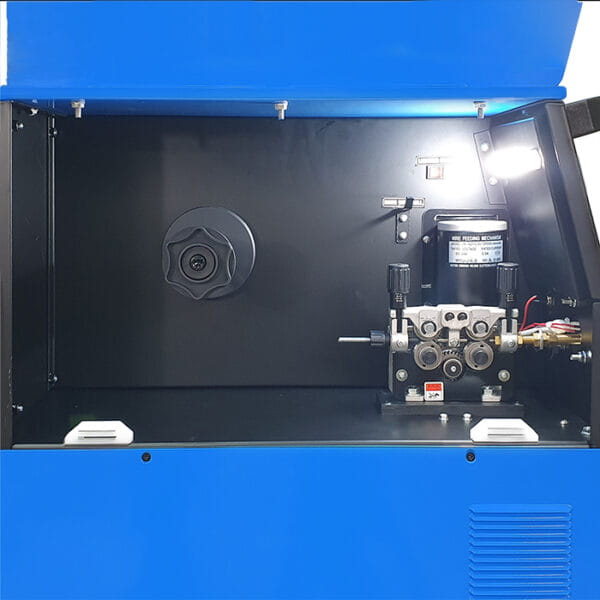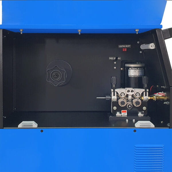 Funkcje 2T/4T, Alarm, Gniazdo zasilania AC 36 V, Opcja Spool Gun, Podajnik 4-rolkowy, Regulacja indukcyjności, Spawanie bez gazu, Sterowanie analogowe, Ustawienia manualne, Wyświetlacz LED, Zintegrowana chłodnica