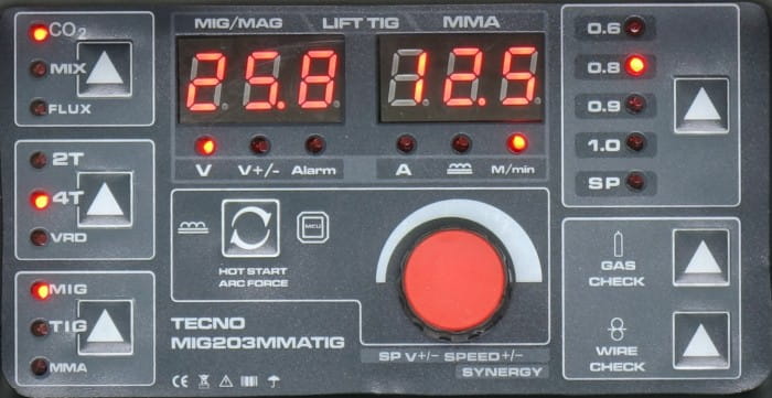TECNOMIG 203 MIG/TIG/MMA SYNERGIC VRD jest inwertorowym synergicznym półautomatem spawalniczym przeznaczonym do spawania łukowego metodą MIG/MAG, TIG LIFT, MMA oraz FLUX. Urządzenie zostało zaprojetowane do szerokiego zakresu zastosowań: od prac konserwacyjnych do napraw nadwozi samochodowych.