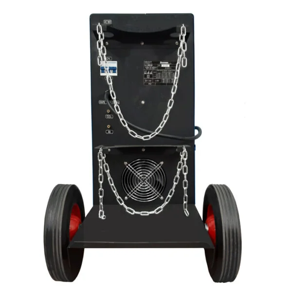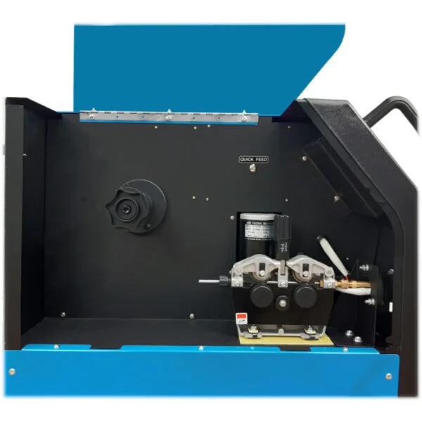 Urządzenie wyposażone jest w profesjonalny 4-rolkowy podajnik drutu z płynną regulacją prędkości posuwu, płynną regulację napięcia spawania przy spawaniu metodą MIG/MAG oraz prądu spawania przy metodzie MMA i TIG, a także bezstykowe jonizacyjne zajarzanie łuku w metodzie TIG. Posiada regulację narastania i opadania prądu oraz opóźnienia gazu. Posiada również przełącznik 2T i 4T, wyświetlacze prądu/napięcia spawania i regulację indukcyjności do spawania cienkich i grubych elementów. Współpracuje ze szpulami drutu K-200 (5kg) oraz K300 (15) kg.