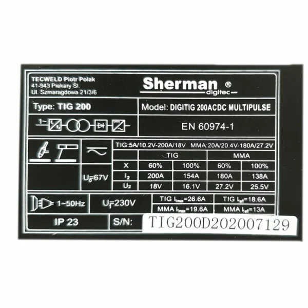 Spawarka TIG DIGITIG 200 AC/DC MULTIPULSE HF SHERMAN