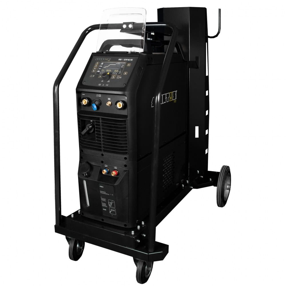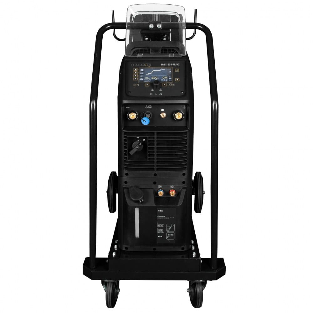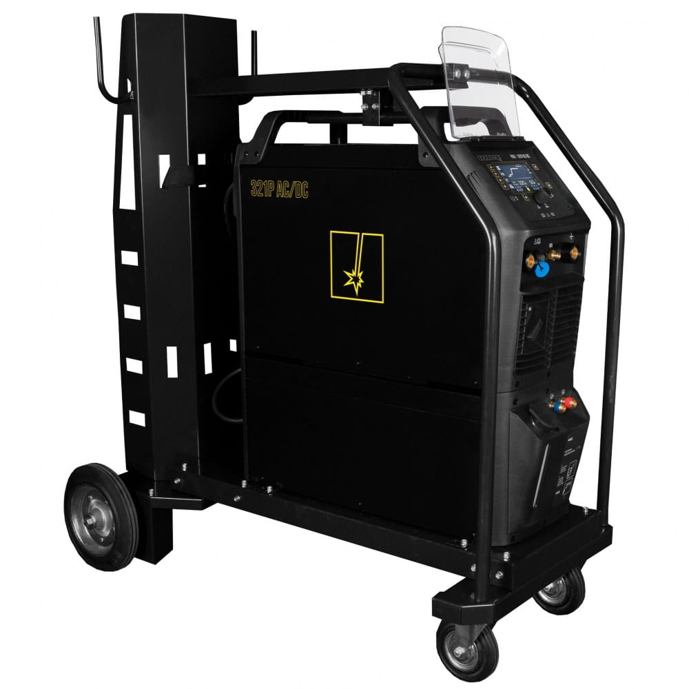 ProTIG 321PW AC/DC wyposażony jest w zintegrowaną chłodnicę cieczy, która zapewnia wydajne chłodzenie uchwytu podczas spawania dużymi prądami. Całość umieszczona jest na wózku transportowym z miejscem na butlę z gazem osłonowym.