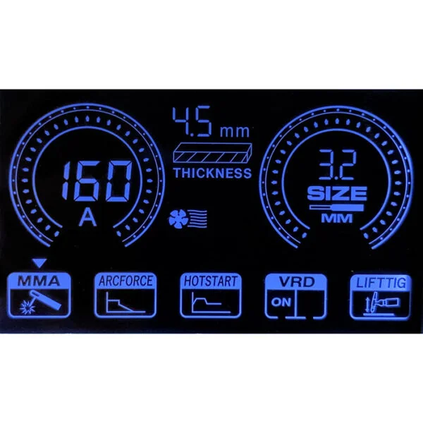 Funkcje Arc Force, Hot Start, Sterowanie analogowe, VRD, Wyświetlacz LED