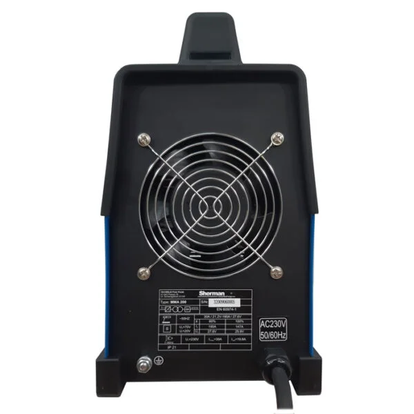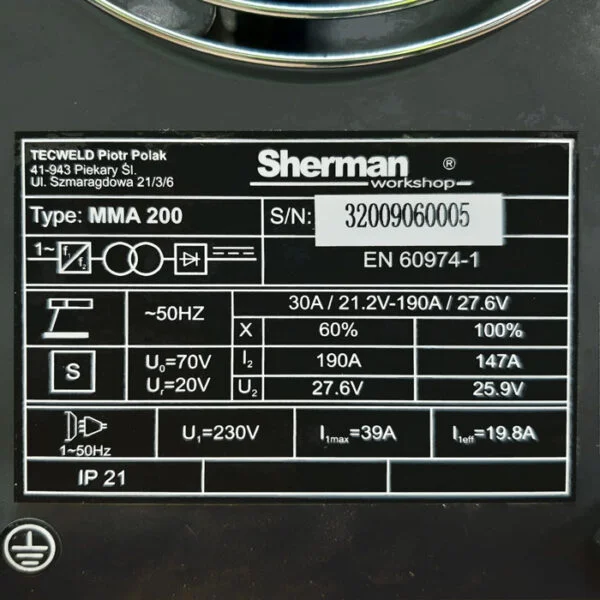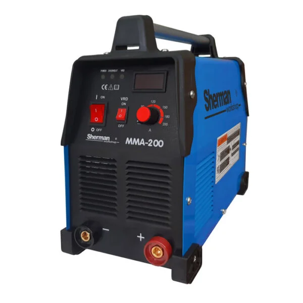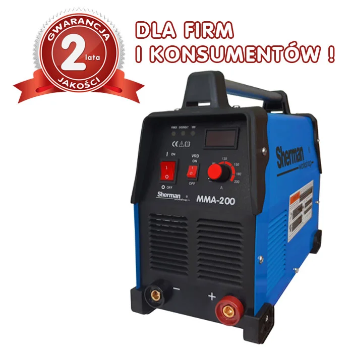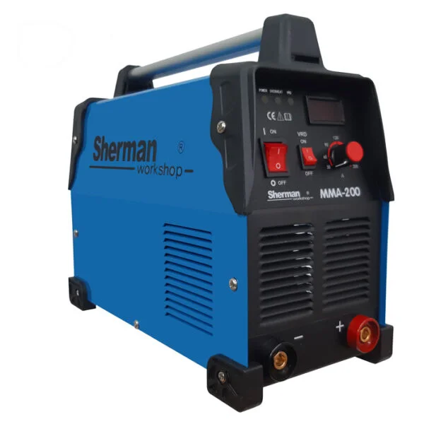 Prostownik spawalniczy MMA 200 Sherman-workshop jest urządzeniem inwertorowym wykonanym w technologii MOSFET przeznaczonym do spawania ręcznego elektrodą otuloną (metoda MMA) stali konstrukcyjnych i jakościowych. Posiada wyświetlacz wskazujący prąd spawania oraz funkcje VRD, Hot Start i Anti Stick. Sprzęt polecany jest w zakładach usługowych i rzemieślniczych do prac warsztatowych oraz lekkich, dorywczych prac produkcyjnych. Sprzęt przeznaczony jest do pracy w pomieszczeniach zamkniętych lub zadaszonych, nienarażonych na bezpośrednie działanie wpływów atmosferycznych.