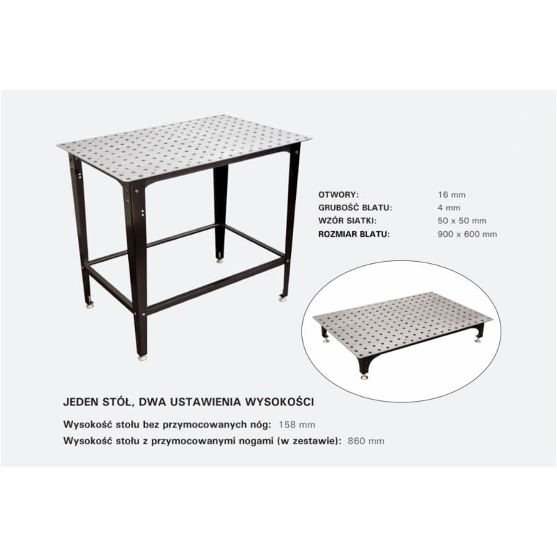 Stół posiada 2 położenia robocze: 158mm (bez mocowania nóg) i 860mm (z zamontowanymi nogami)